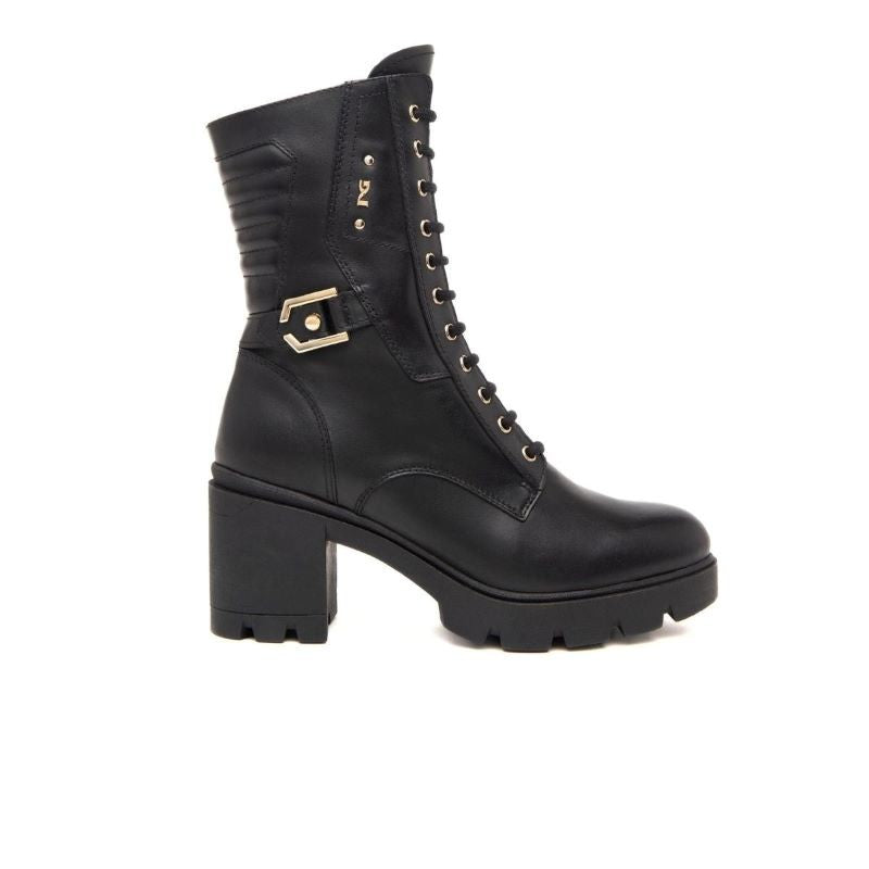 Nero Giardini I411901D? Women's Leather Ankle Boots with Heel and Gold Detail
