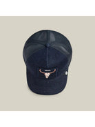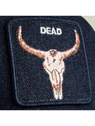 Cappello GOORIN BROSS Corona in denim, Toppa con una testa di toro ridotta all'osso, cucita indaco, che fissa il mondo come un segnale d'allarme.