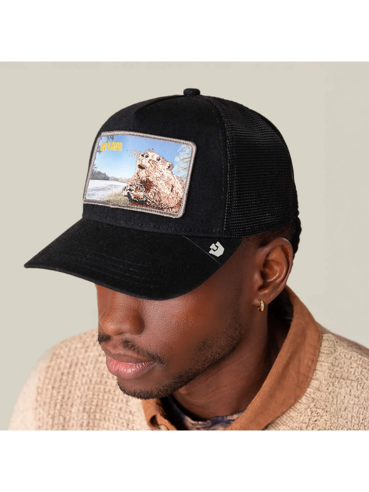 Cappello GOORIN BROSS Corona nera, macchia croccante e un castoro sveglio dall'alba ad accatastare tronchi e montare tende.