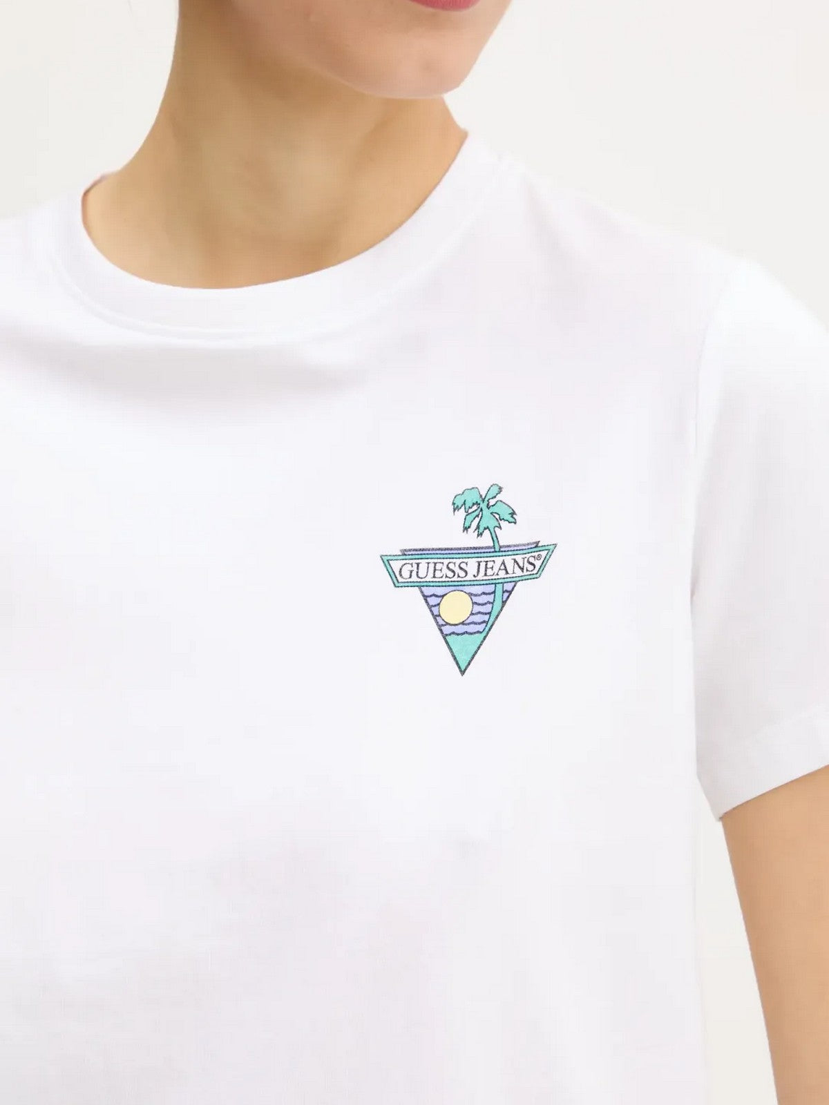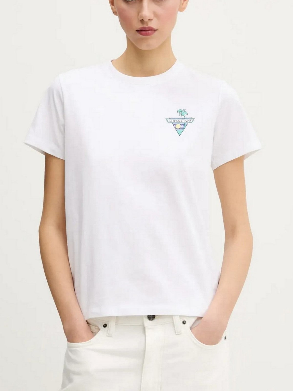 GUESS Women's T-shirt GJ SS CN REG TRIANGLE PALM TEE W5GI25 J1314 G011 White