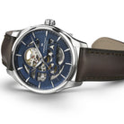 Il Jazzmaster Skeleton 36 mm, con il suo quadrante traforato blu, punta tutto sulla precisione e rivela al contempo la raffinata bellezza del movimento meccanico al suo interno. Mettendo in risalto il movimento automatico H-10, con una riserva di carica di 80 ore e spirale in Nivachron?, il Jazzmaster Skeleton vanta un sofisticato cinturino in pelle marrone, che incarna il savoir-faire in continua evoluzione di Hamilton e l'attenzione ai dettagli.