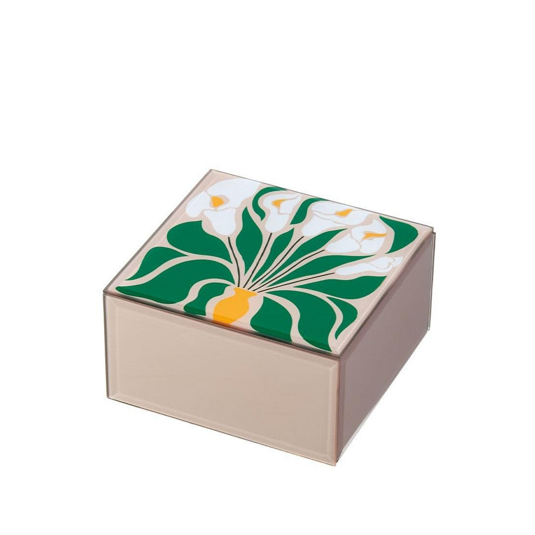 Portagioie in vetro. Un complemento d'arredo dal vivace contrasto di colori e decoro floreale. Perfetto se abbinato agli altri portagioie dell'ispirazione Urban per riordinare piccoli accessori e gioielli.