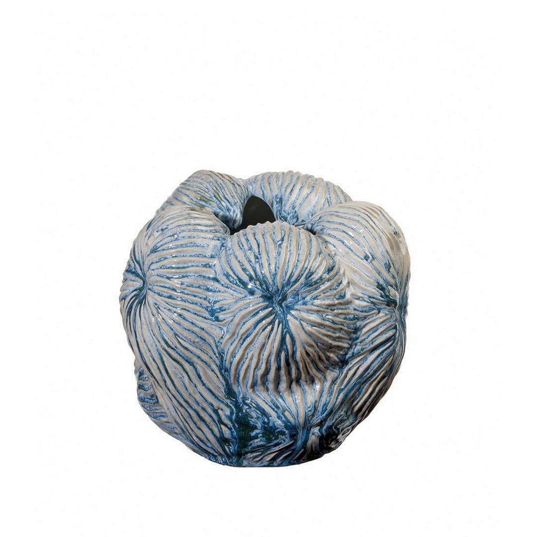 A low stoneware vase. The shape is inspired by the ocean floor, creating a modern and sophisticated design detail. Ideal for pairing with the matching tall vase from the Orizzonti collection for an unconventional floral arrangement.