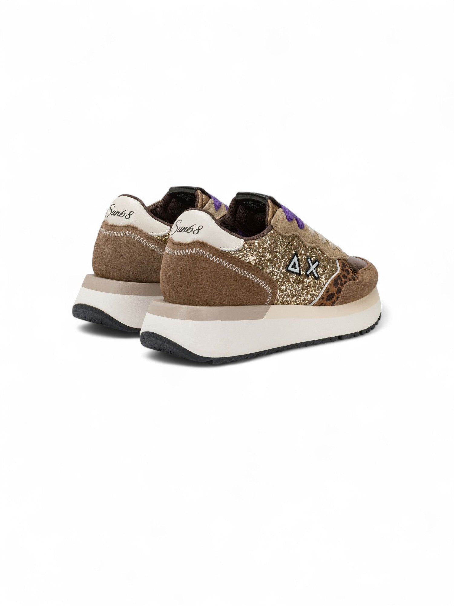 a sneaker Big Ally Glitter dall'attitudine casual chic con l'inserto sui lati tempestato di glitter luminosi. Impreziosita con dettagli logati SUN68 per una nota grintosa. La suola alta in gomma leggera sostiene i movimenti e slancia la silhouette.