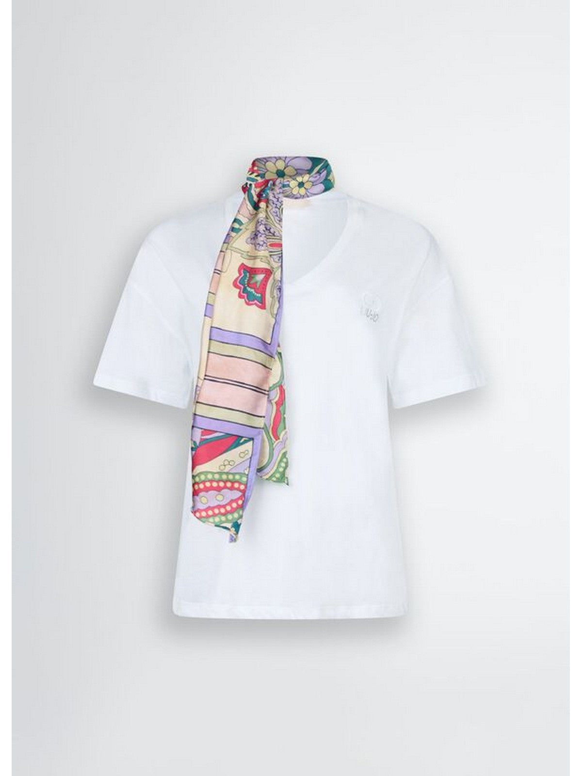 Liu Jo Women's T-Shirt - Women's T-Shirt with Patterned Scarf - White