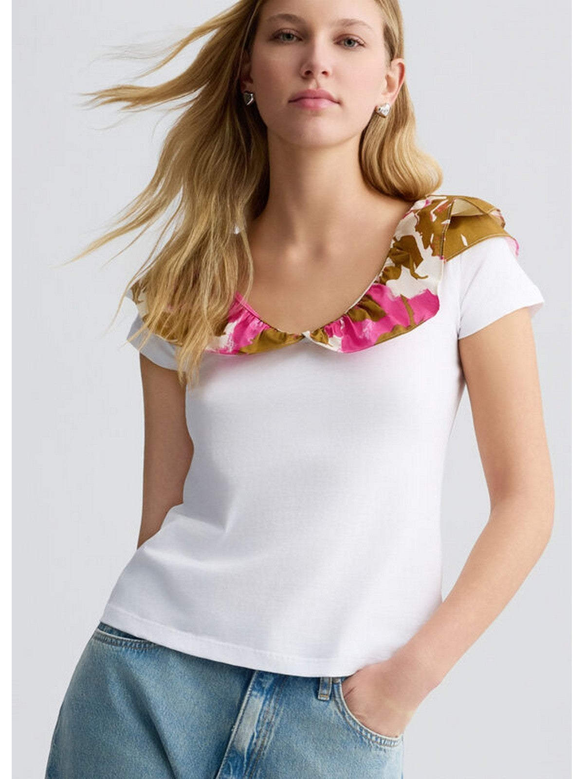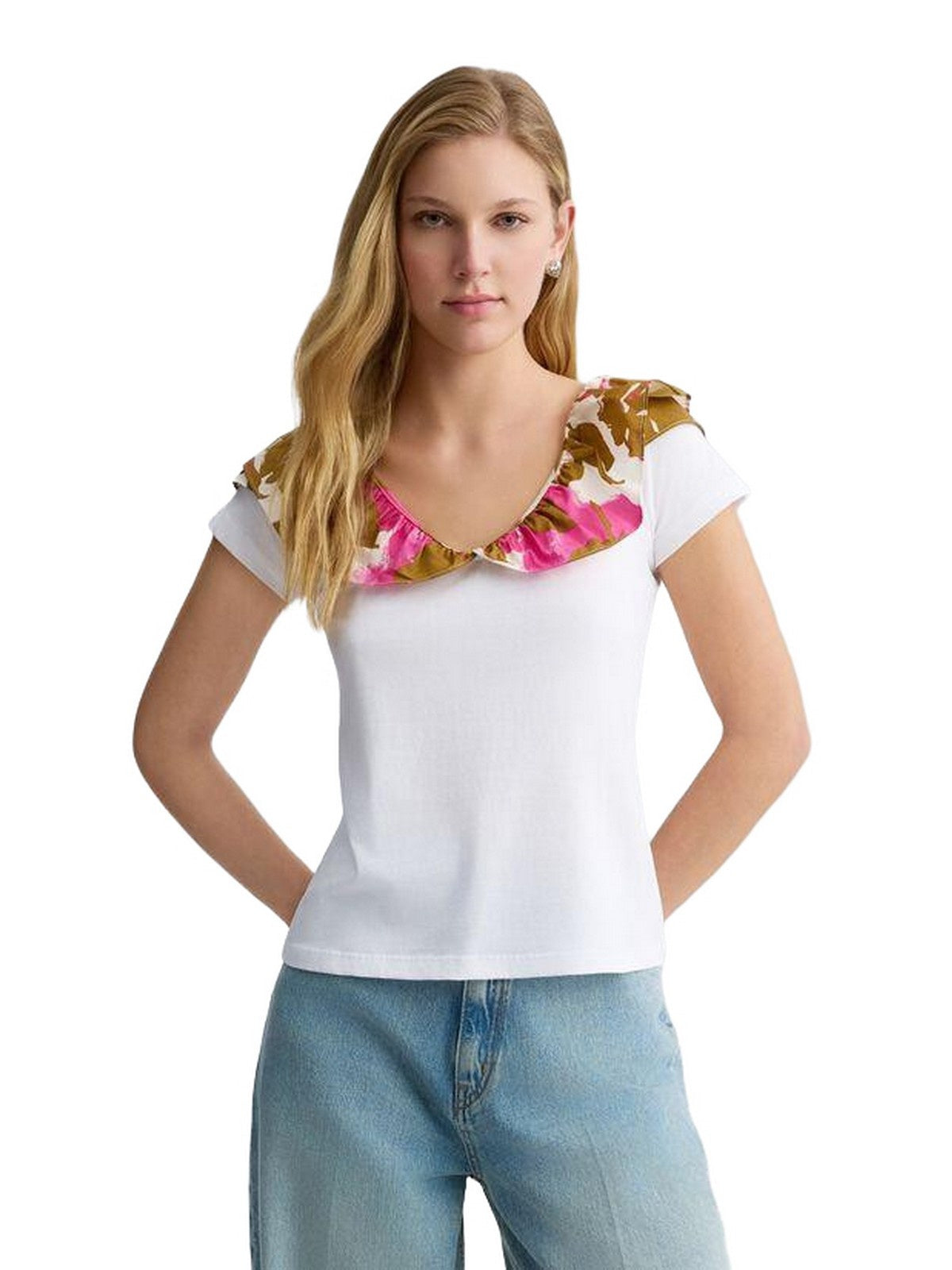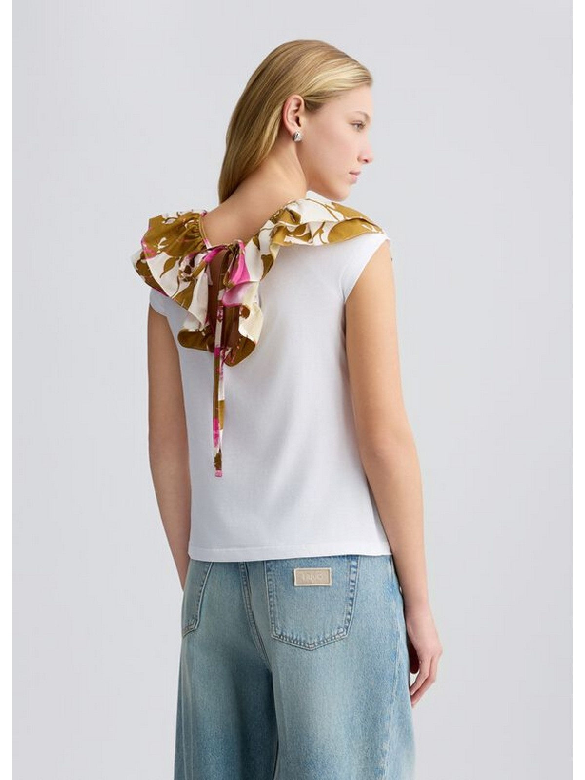 Liu Jo Women's T-Shirt - Cotton T-Shirt with Ruffles - White