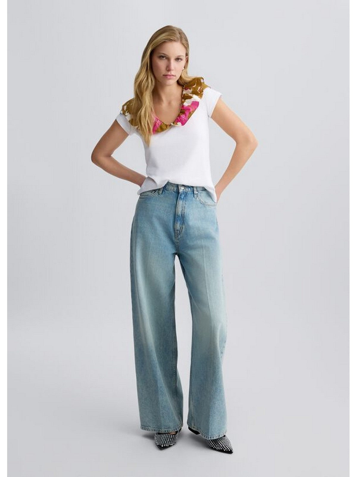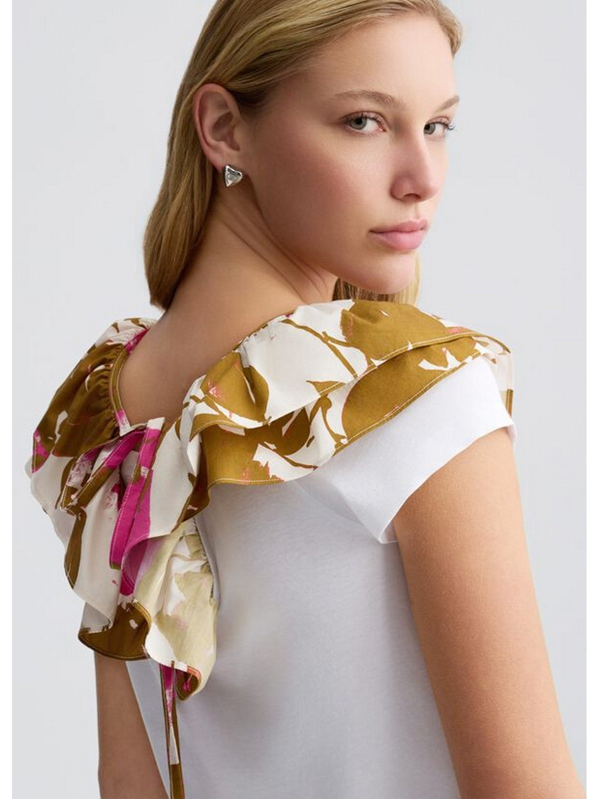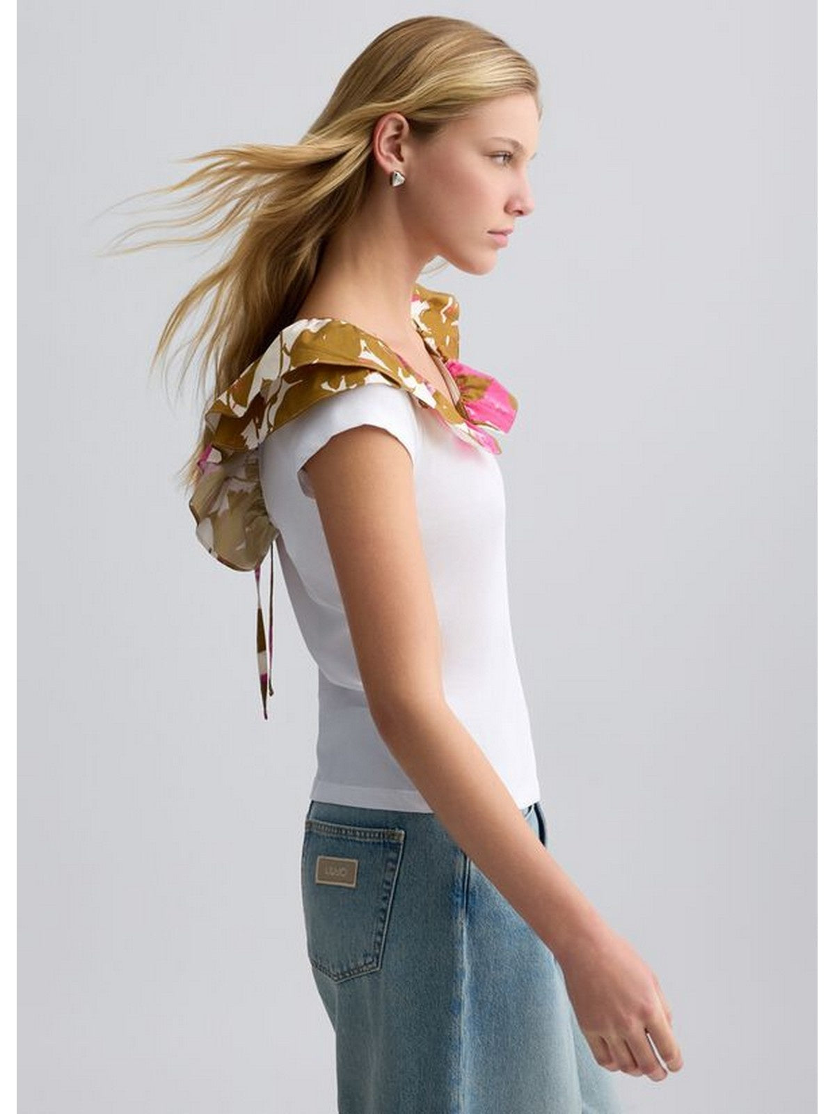 Liu Jo Women's T-Shirt - Cotton T-Shirt with Ruffles - White