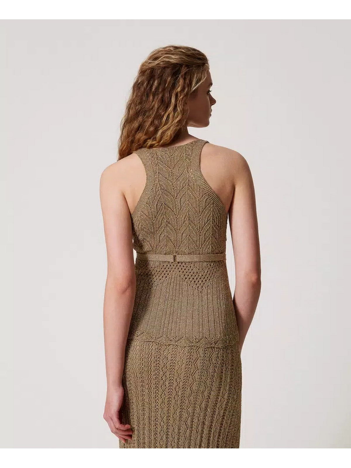 TWINSET top in viscose and lurex blend knit with punched workmanship that creates geometric designs.