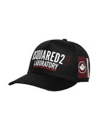 Cappello da baseball DSQUARED2 in gabardina con logo Laboratory gommato sul davanti e un originale grafica laterale, in cui è integrata la Maple Leaf canadese, simbolo iconico dell'universo Dsquared2.