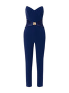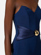 Complete the look with a pair of gold pumps and a matching clutch. The ensemble is perfect for an elegant event, combining sophistication and class.