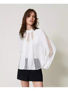 TWINSET blouse in viscose crepe with light floral lace inserts