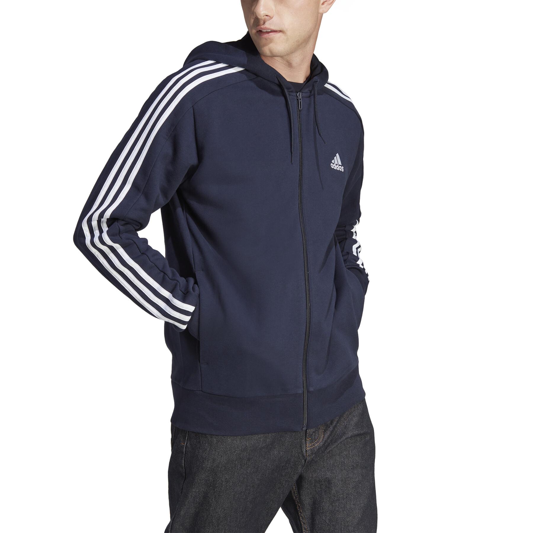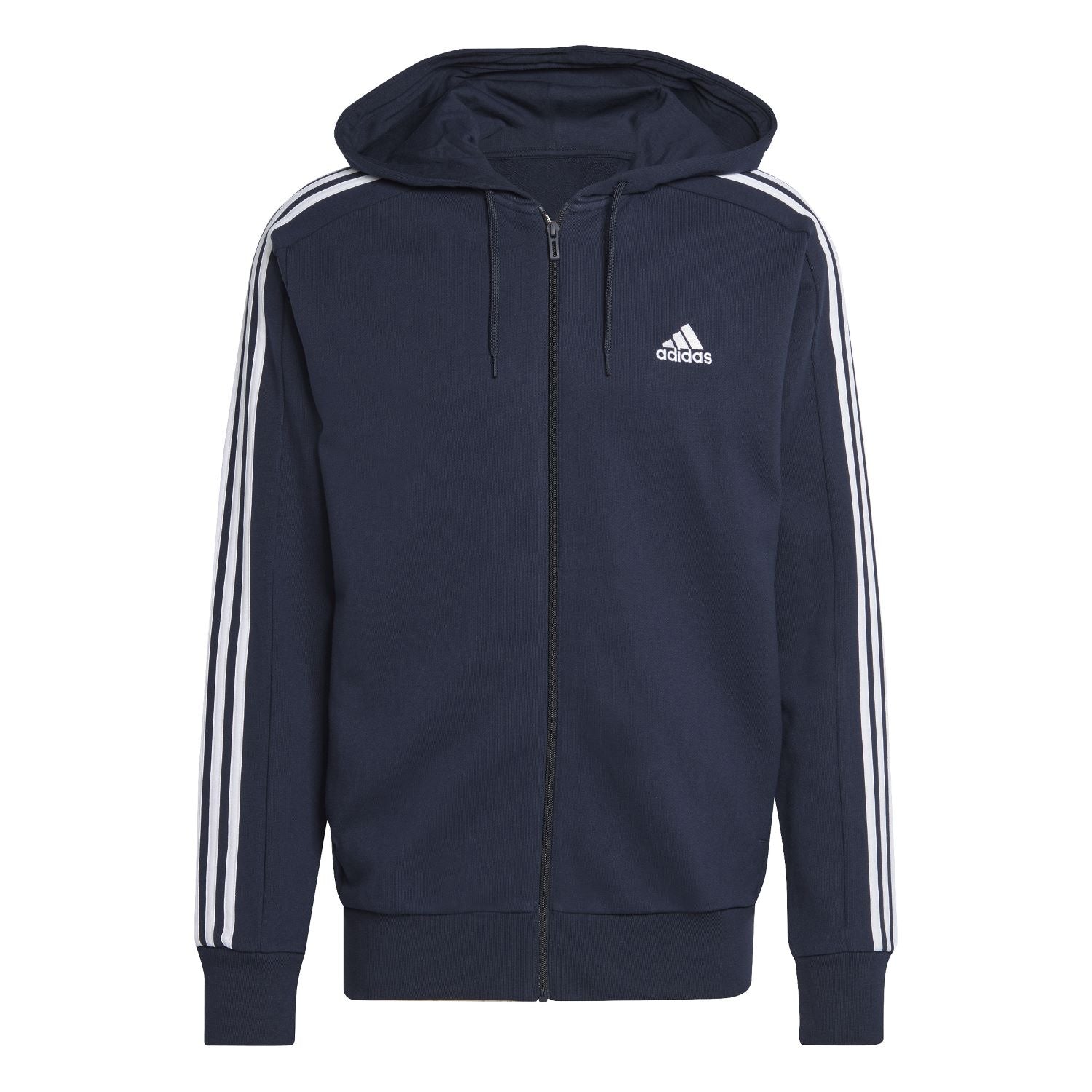 Adidas Essentials full-zip hoodie in French terry (brushed cotton) with three stripes. This versatile and sporty men's zip-up hoodie is perfect for any occasion. Regular fit, full zip, and drawstring-adjustable hood. 100% cotton. Front pockets, ribbed cuffs and hem. Salbini Sporting Goods is an Adidas retailer.