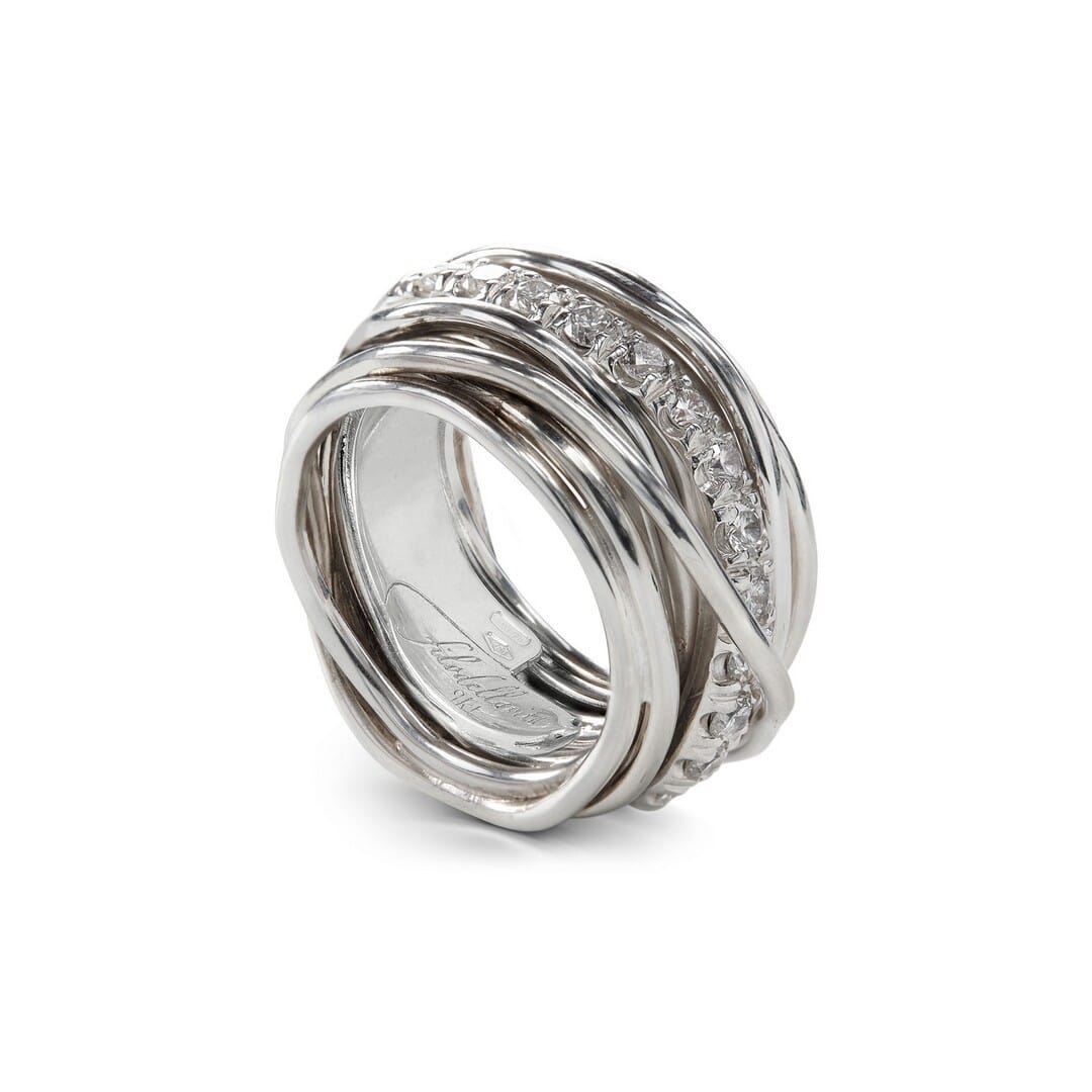 Filodellavita Carato Collection Ring, 13 Strands in .950 Palladium Silver and 13 White Diamonds, 1.00 ct total.