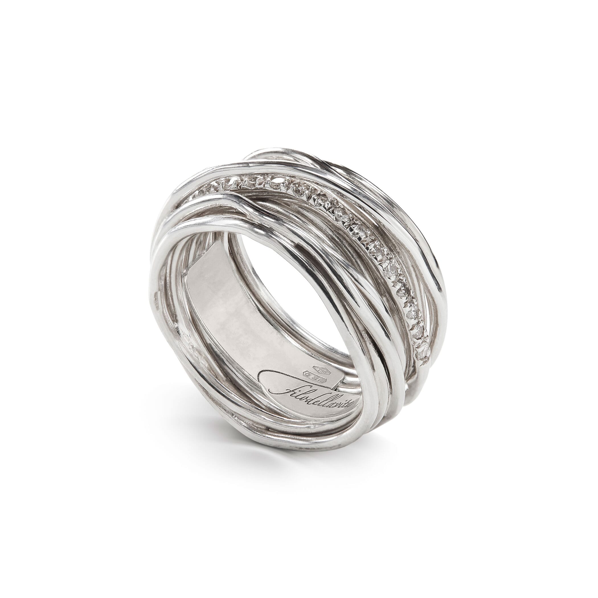 Filodellavita Classic Collection Ring, 13 Strands in .925 Silver and 16 White Diamonds (0.21 ct)