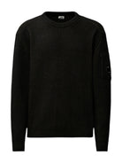 Maglione C.P. COMPANY realizzata in lana vanisé con ciniglia di poliestere a contrasto. Il modello è arricchito dall'iconica Lente di C.P. Company. Finezza 7. Regular fit.