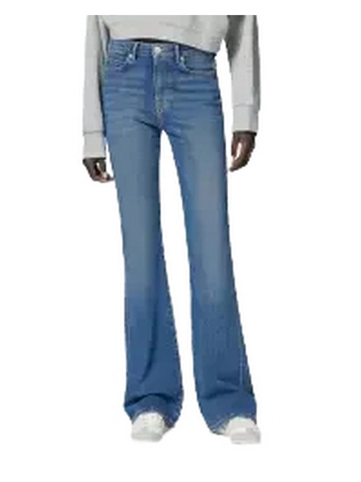 Women's five-pocket jeans crafted from comfortable cotton denim with a medium-dark vintage wash. These jeans feature a fitted leg that tapers to the knee and flares toward the bottom, creating the classic and iconic '70s-inspired bell-bottom silhouette. This style's high-waisted design flatters your figure, making them perfect for everyday outfits with a contemporary twist. They close with a metal tack button and covered zip.