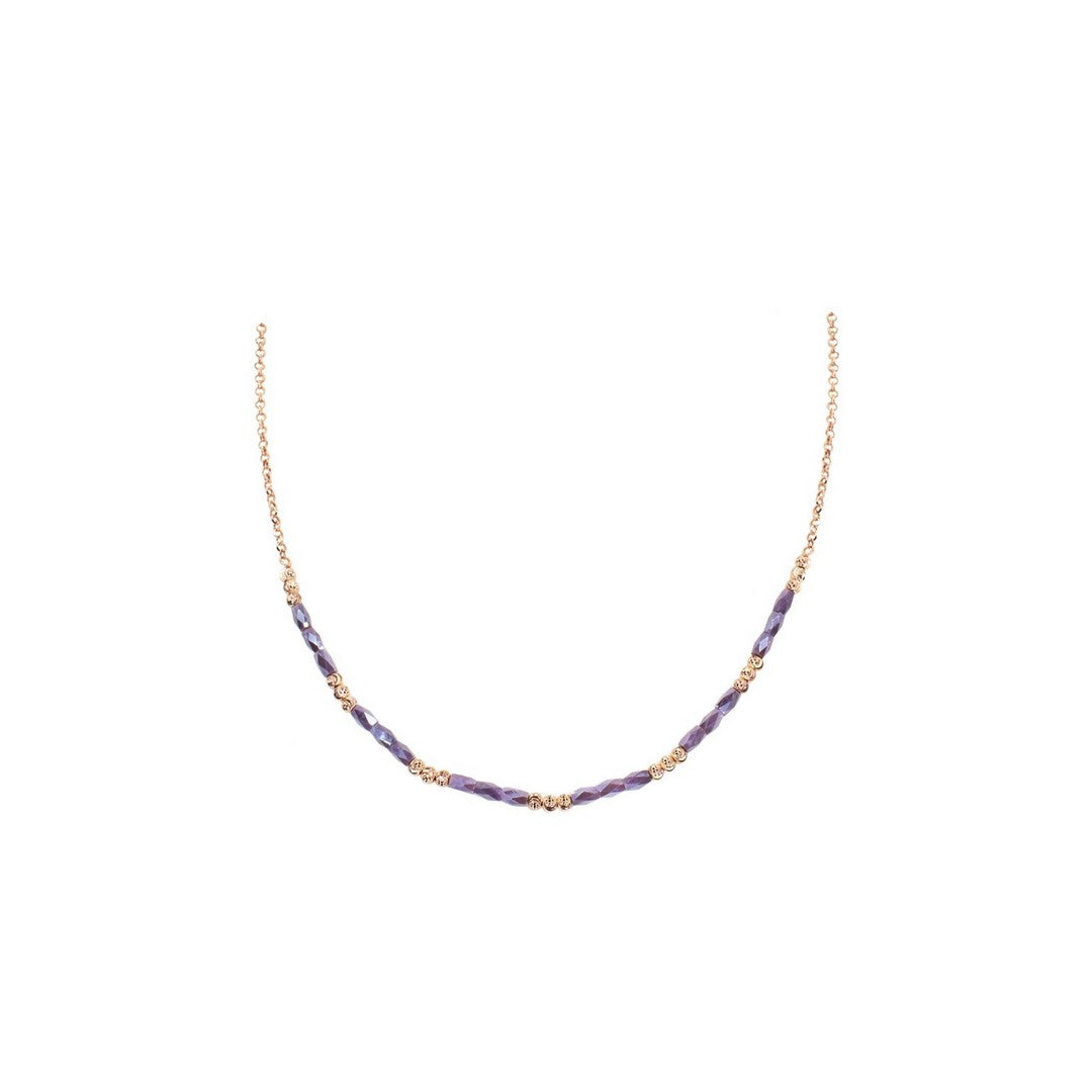 Collana Cristalli Grigi e Palline Sfaccettate argento 925 rosè cm45