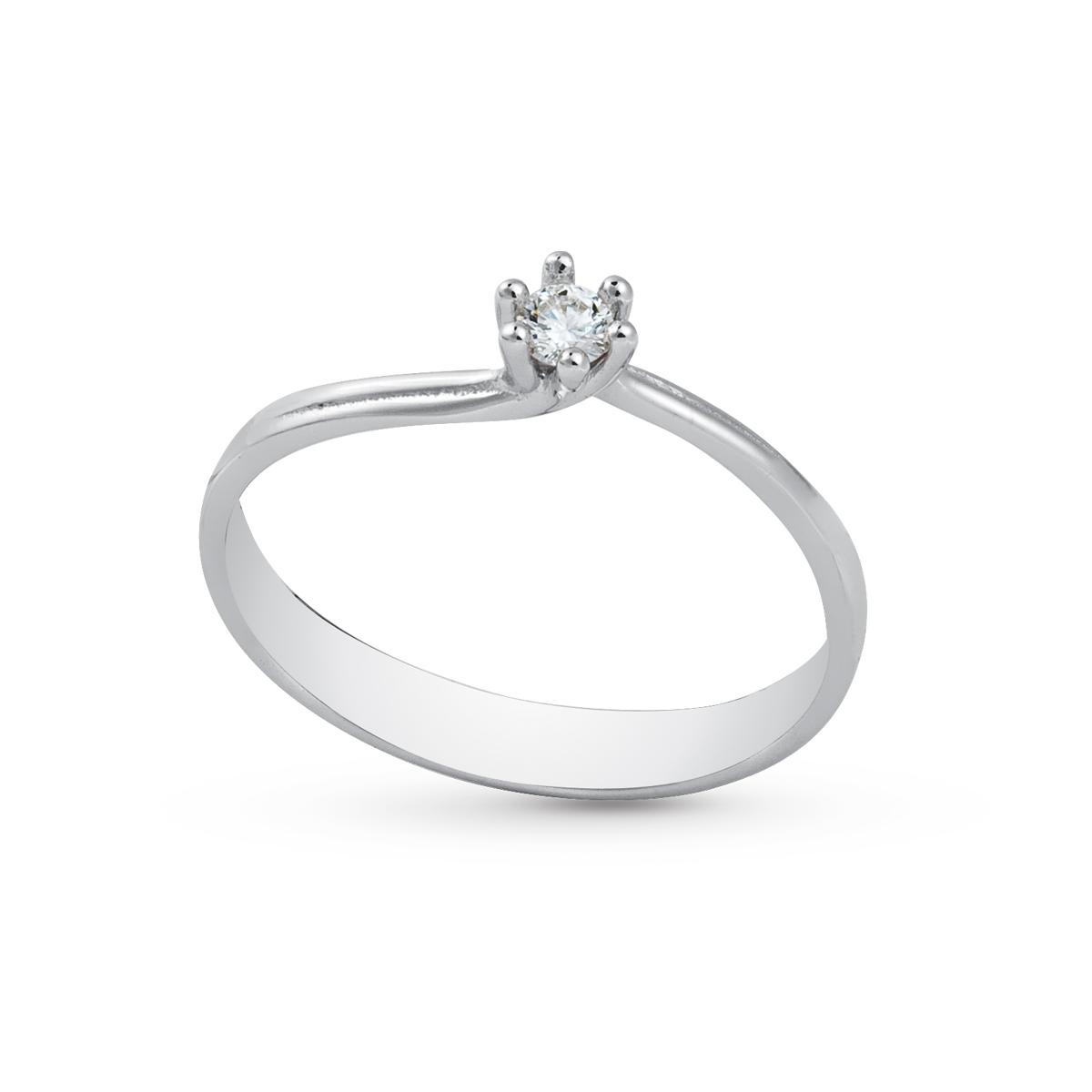 Anello Solitario Valentino in Oro 18kt bianco rodiato con Diamante avvolto da sei griffe, taglia: 13.