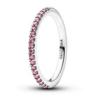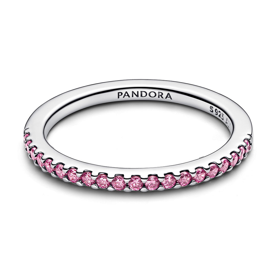 L'anello d'argento senza tempo di PANDORA è ornato da minuscoli zirconi rosa tutt'intorno. Le pietre impostate con precisione creano una linea continua e radiante e conferiscono all'anello un look elegante ed equilibrato con un sottile accento di colore.