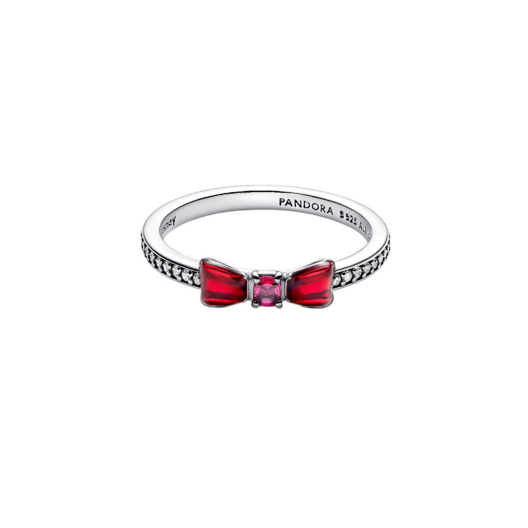 Disney Neve Bianco Anello ad arco in Argento Sterling 925 con cristallo rosa, zirconia cubica incolore e smalto rosso