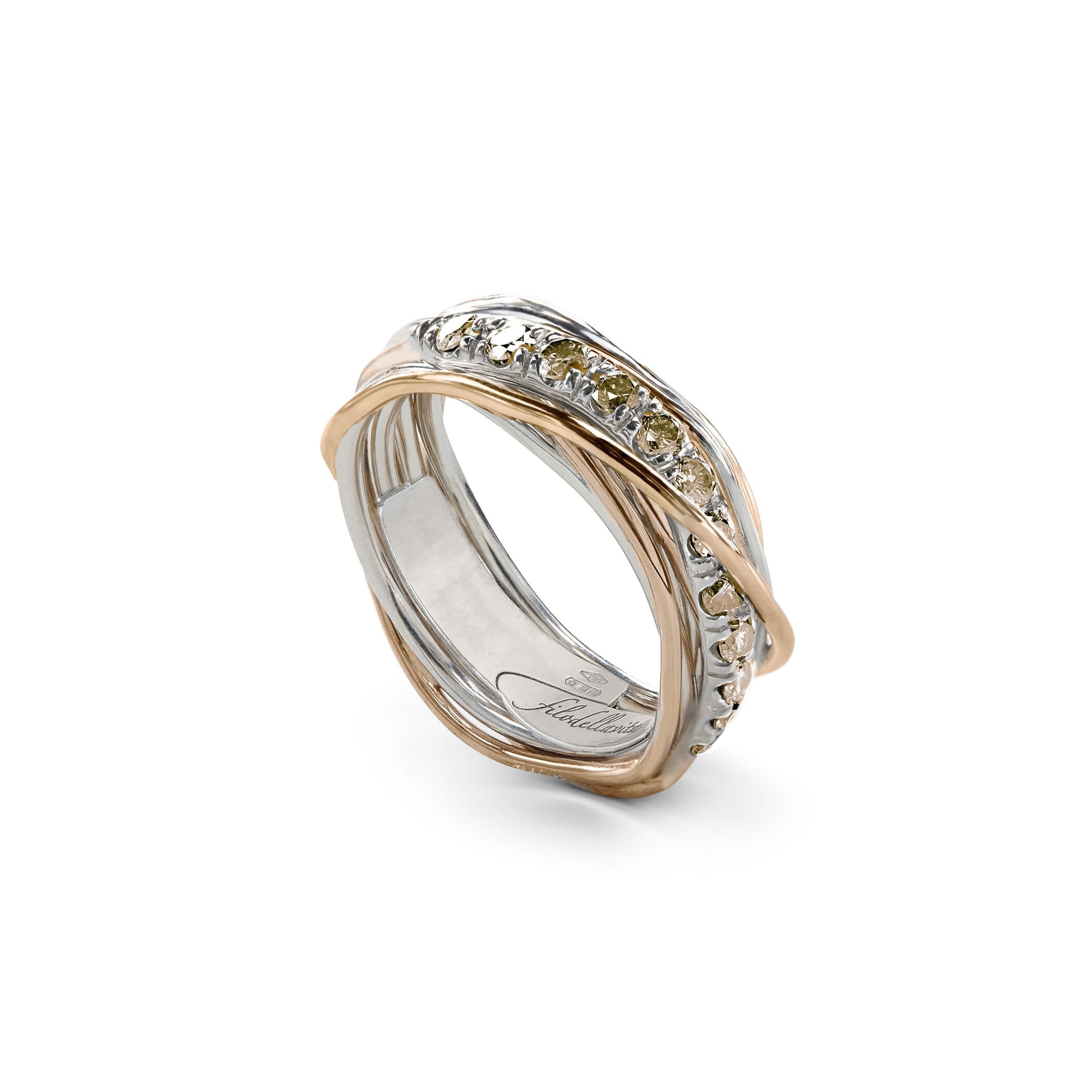 Anello Filodellavita Prezioso Collection, 7 Fili in Oro Giallo 9kt, Argento .950 al Palladio e 15 Diamanti Brown 0.80 ct tot.