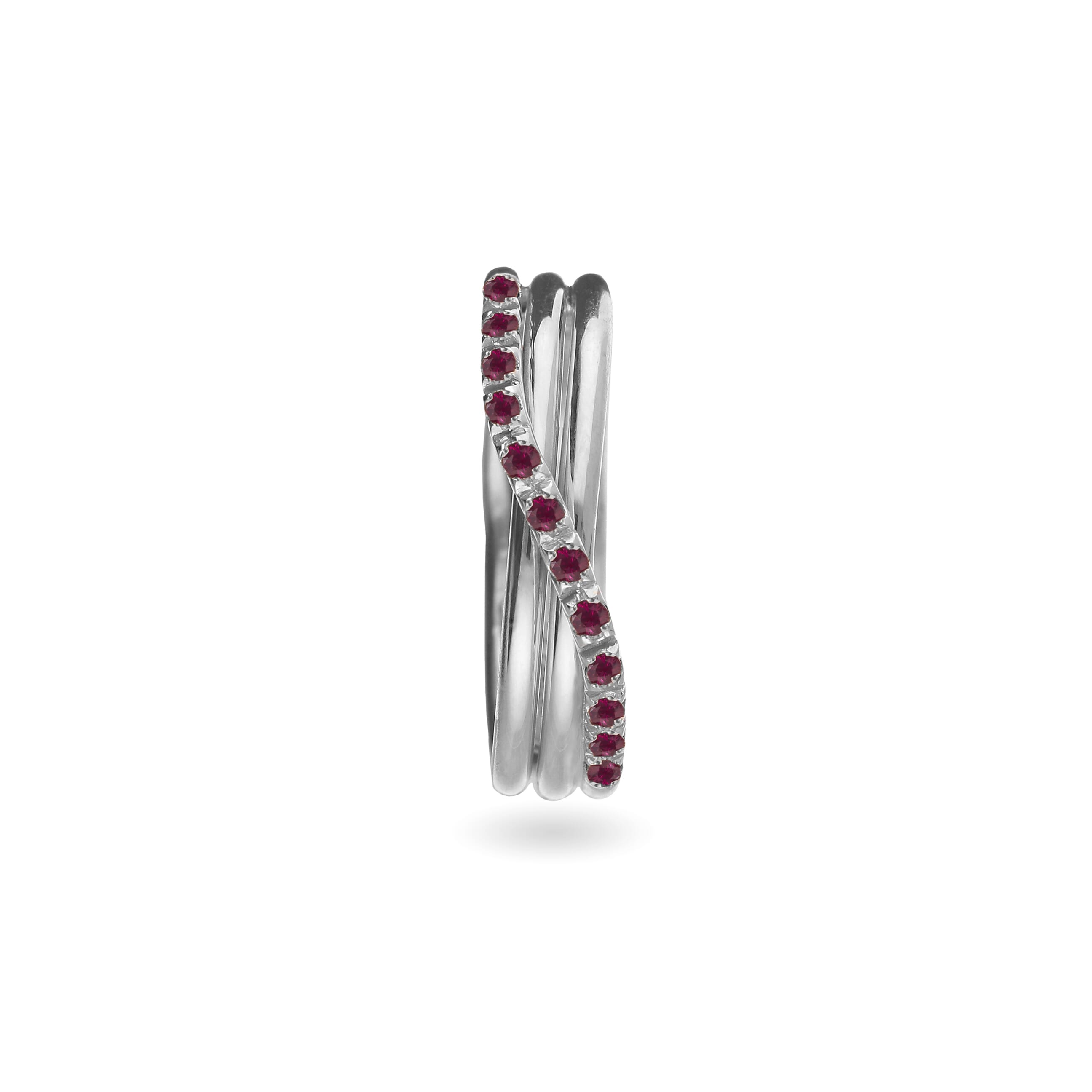 Anello Filodellavita Prezioso Collection, 3 Fili in Argento .950 al Palladio 950 con 12 Rubini 0.20 ct tot.