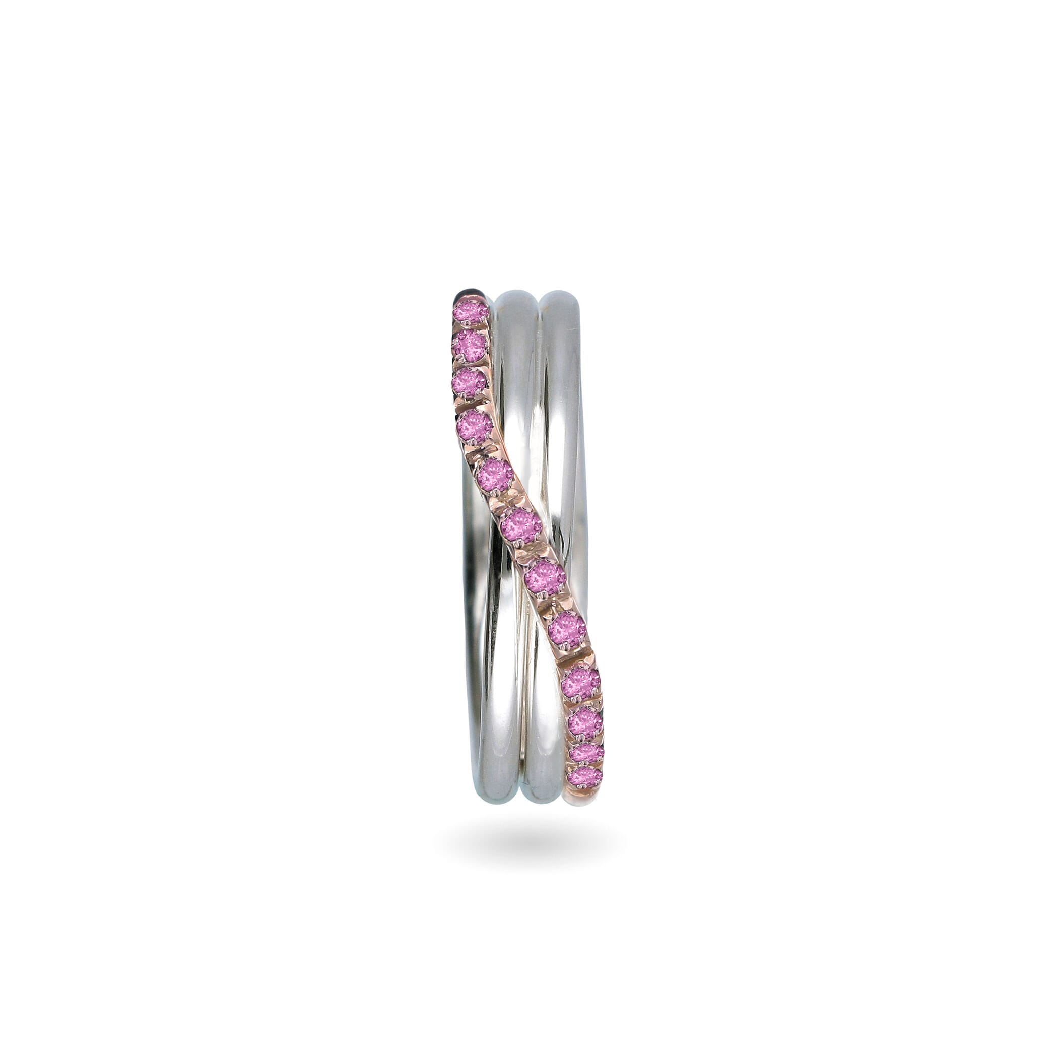 Anello Filodellavita Prezioso Collection, 3 Fili in Oro Rosa 9kt, Argento .950 al Palladio 950 e 12 Za"ri Rosa 0.30 ct tot.