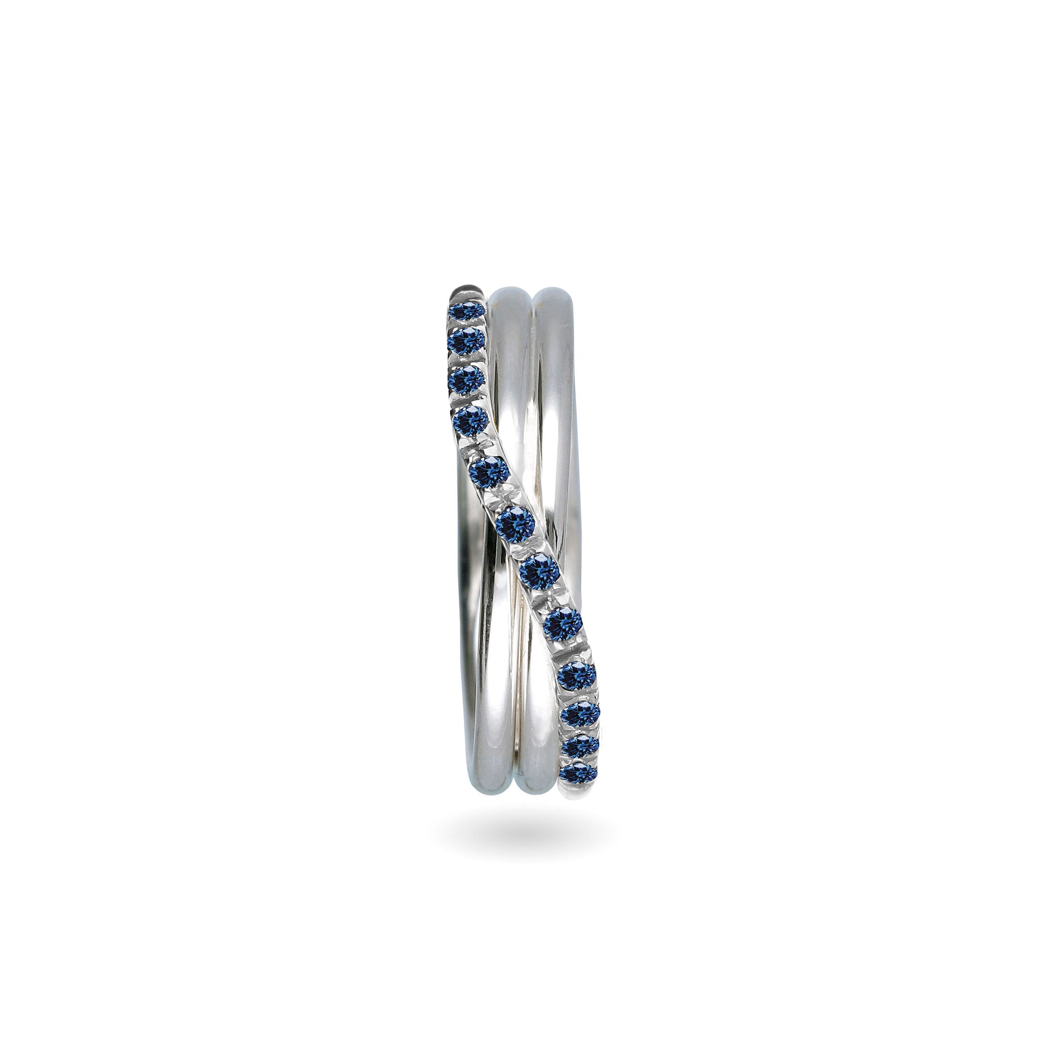 Anello Filodellavita Prezioso Collection, 3 Fili in Argento .950 al Palladio 950 con 12 Za"ri Blu 0.21 ct tot.
