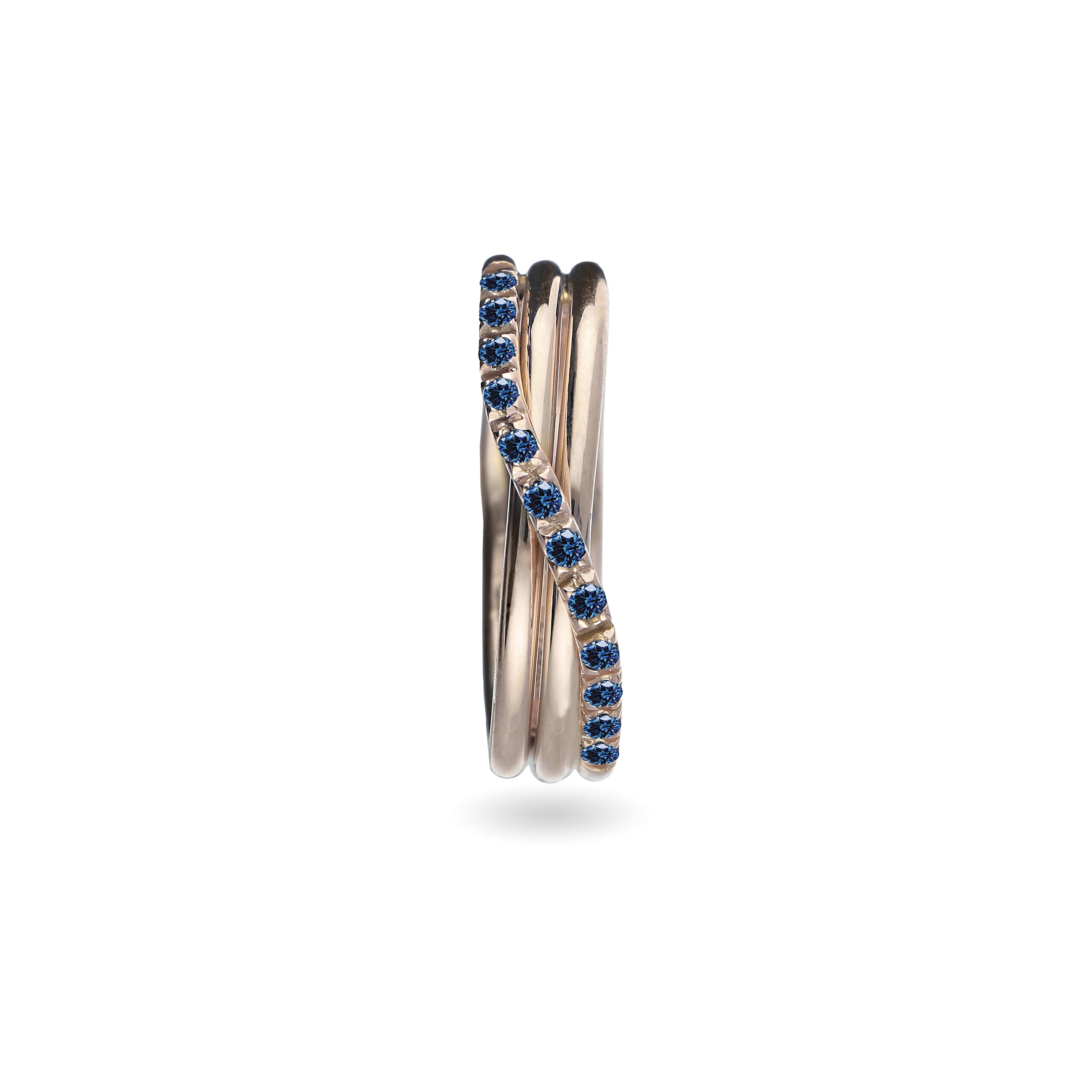 Anello Filodellavita Prezioso Collection, 3 Fili in Oro Rosa 9kt con 12 Za"ri Blu 0.21 ct tot.