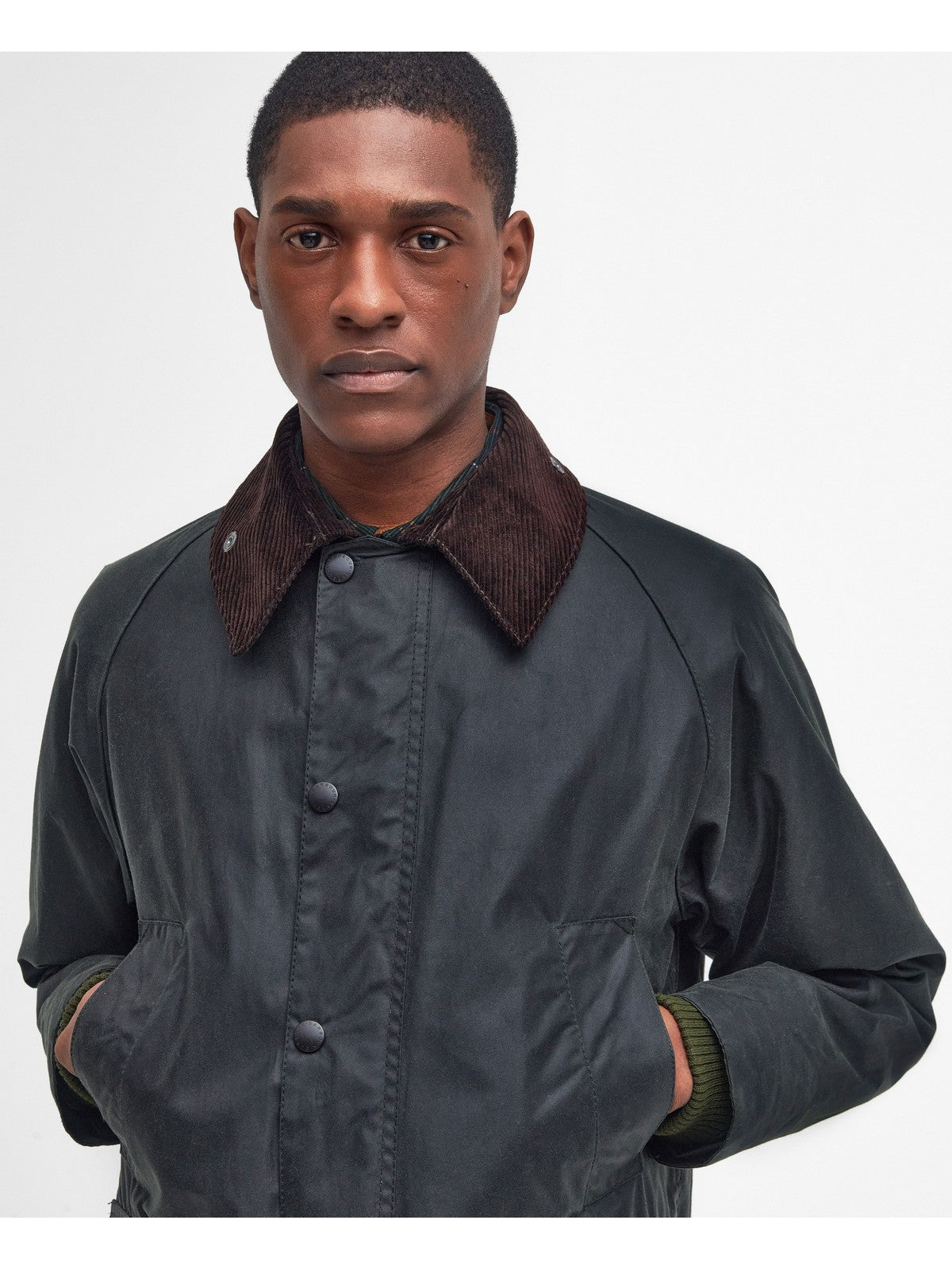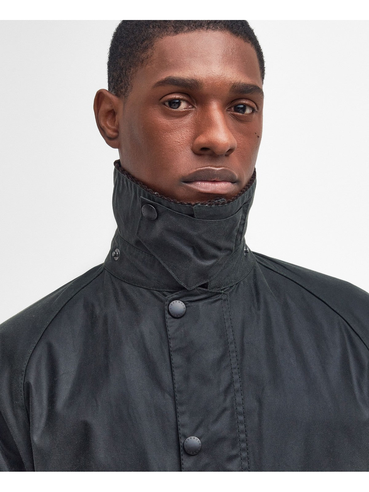 Giubbino BARBOUR realizzato in cotone cerato di peso medio e dotato di fodera e cappuccio termici opzionali con cerniera.