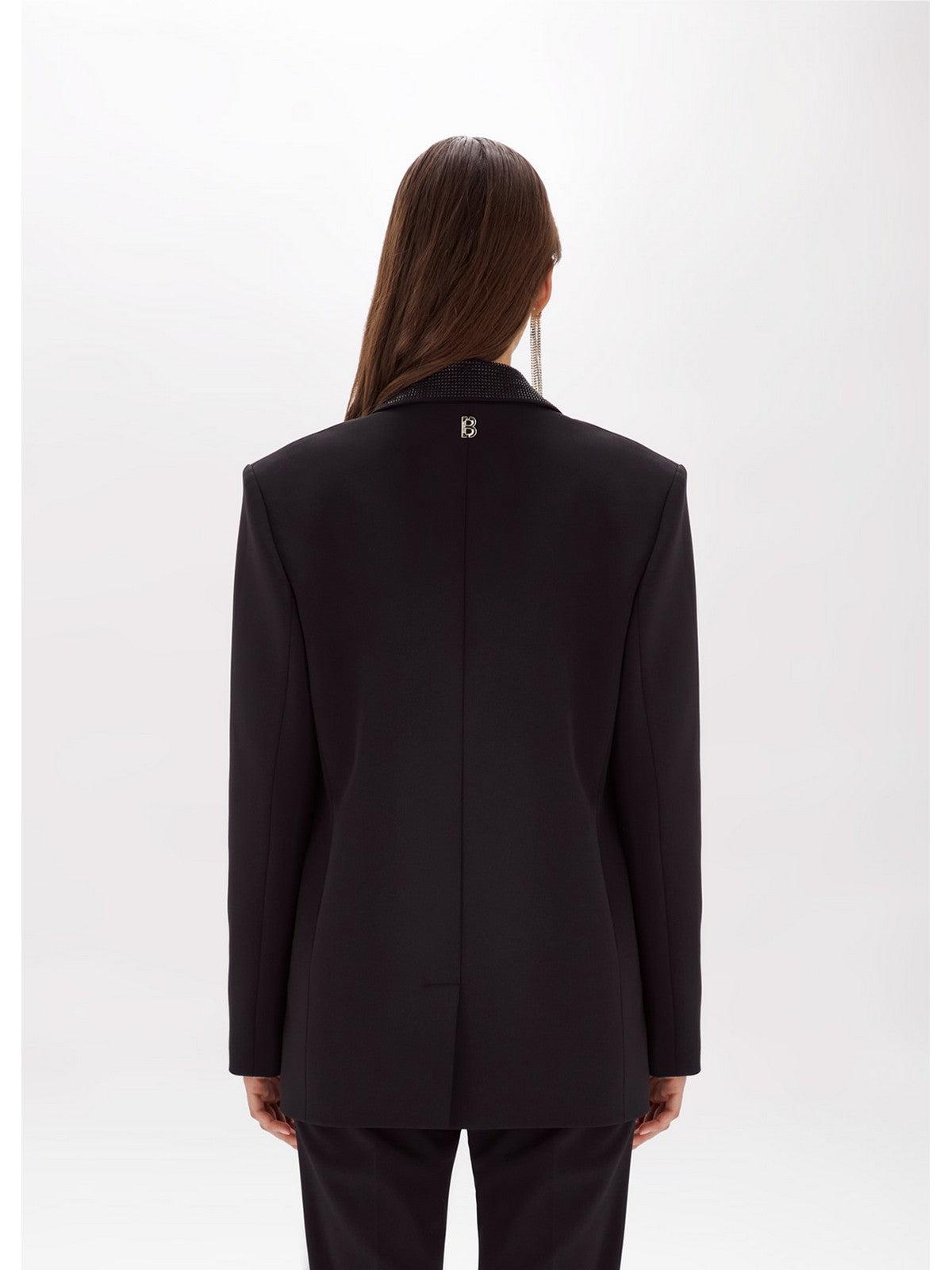 Giacca BLUGIRL in crepe stretch. Linea over. Revers a lancia in full strass. Chiusura monopetto con bottoni ricoperti. Tasche con patta rifinite da strass. Foderata.