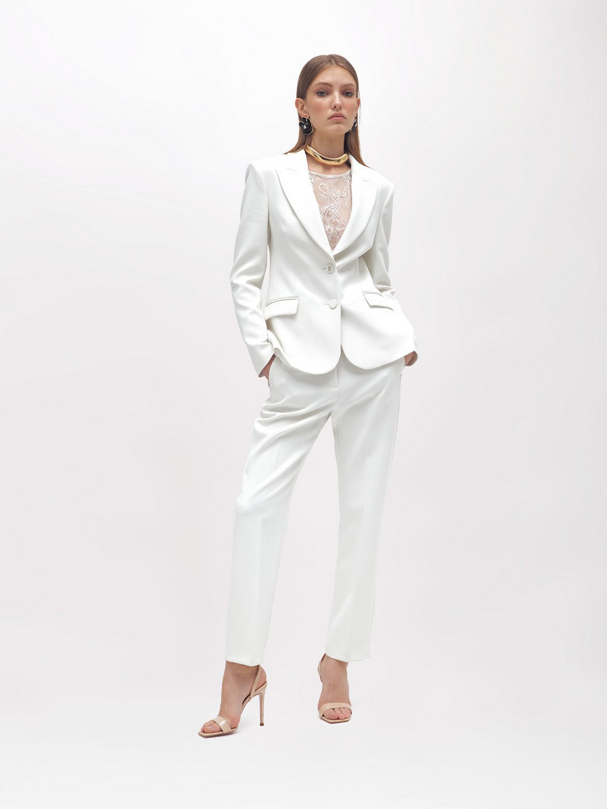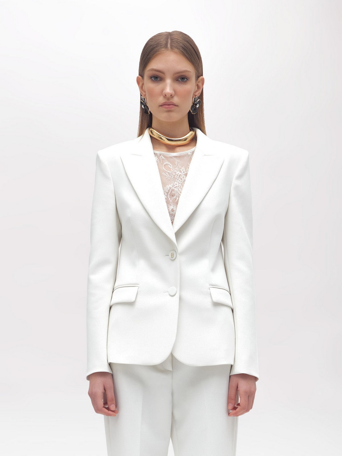 Un capo d'abbigliamento unico e versatile, da indossare per una cerimonia o un'occasione speciale. Si può abbinare ai pantaloni dello stesso tessuto e colore.