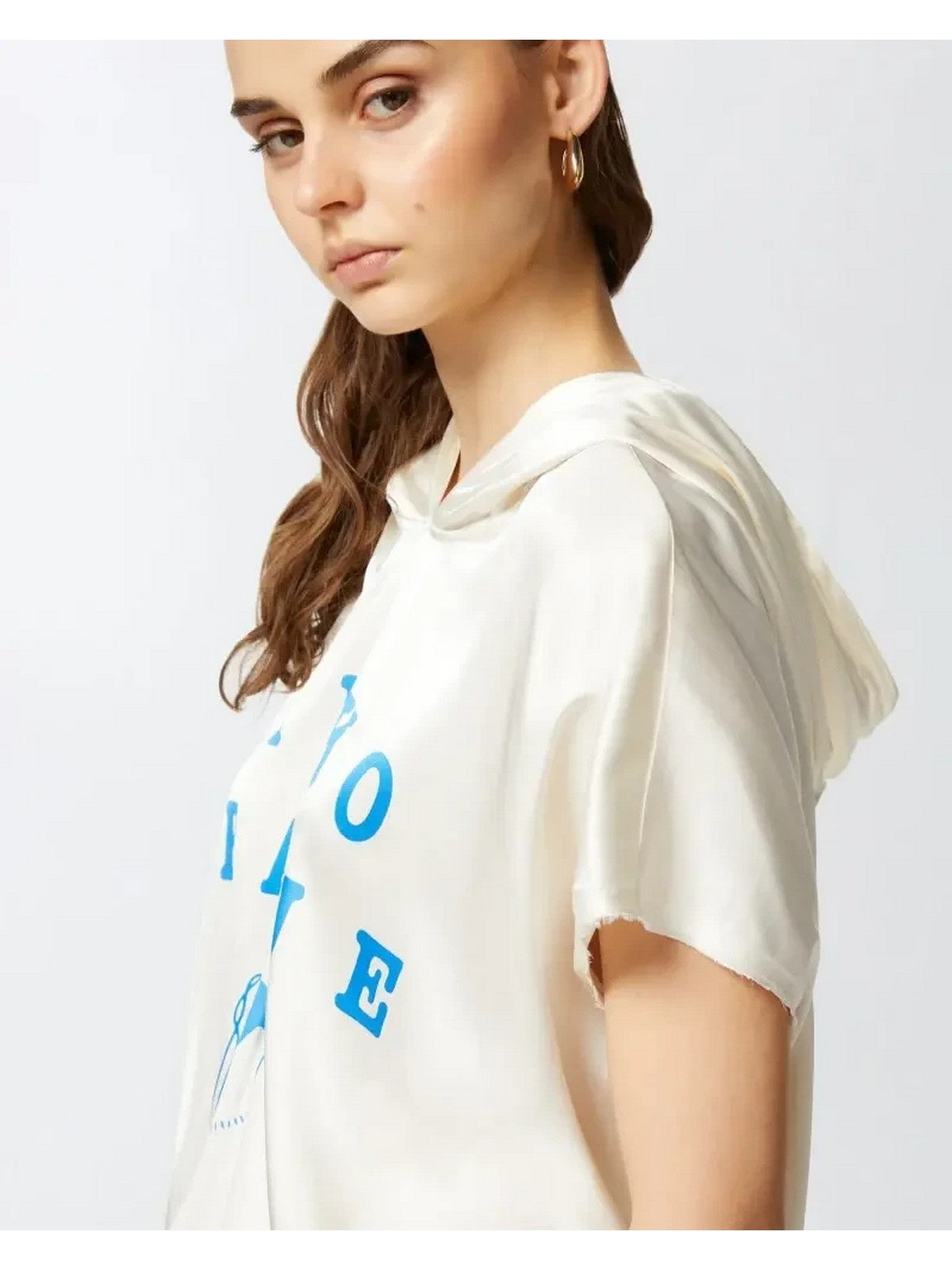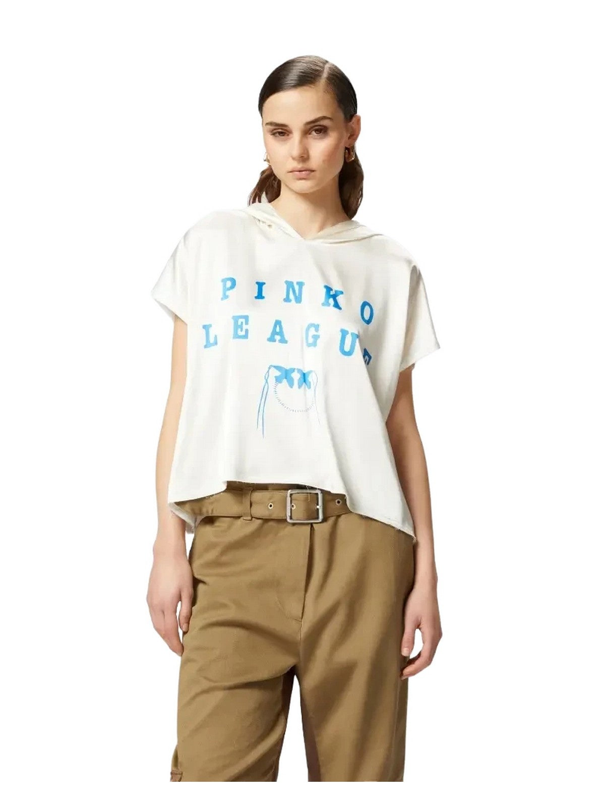 Bluse e camicie Donna Pinko - Blusa con cappuccio e stampa PINKO League - Bianco