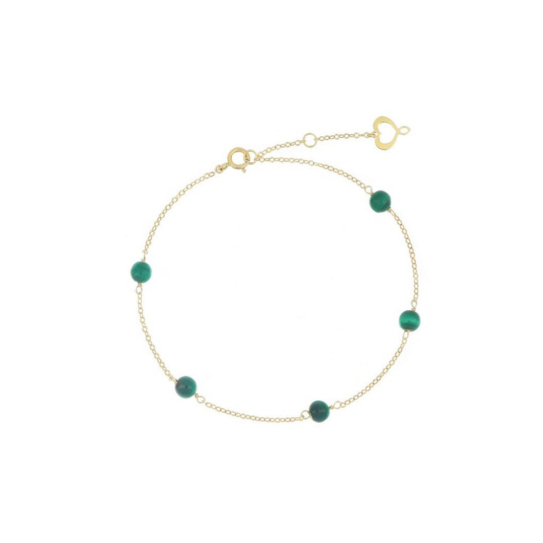 Bracciale in oro giallo 18 carati con cinque sfere di malachite.