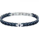 Bracciale da Uomo in acciaio 316L anallergico, ceramica blu e targhetta centrale con l'iconico logo a tridente del brand in PVD blue