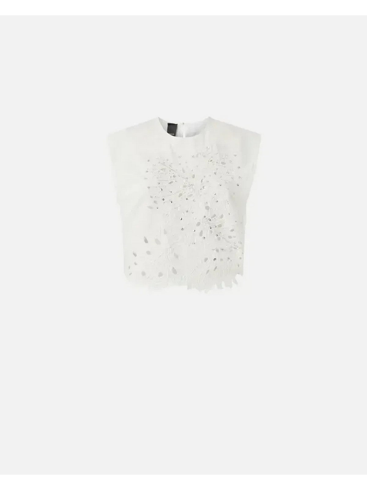 Canotte e top Donna Pinko - Crop top con ricamo traforato e cristalli - Bianco