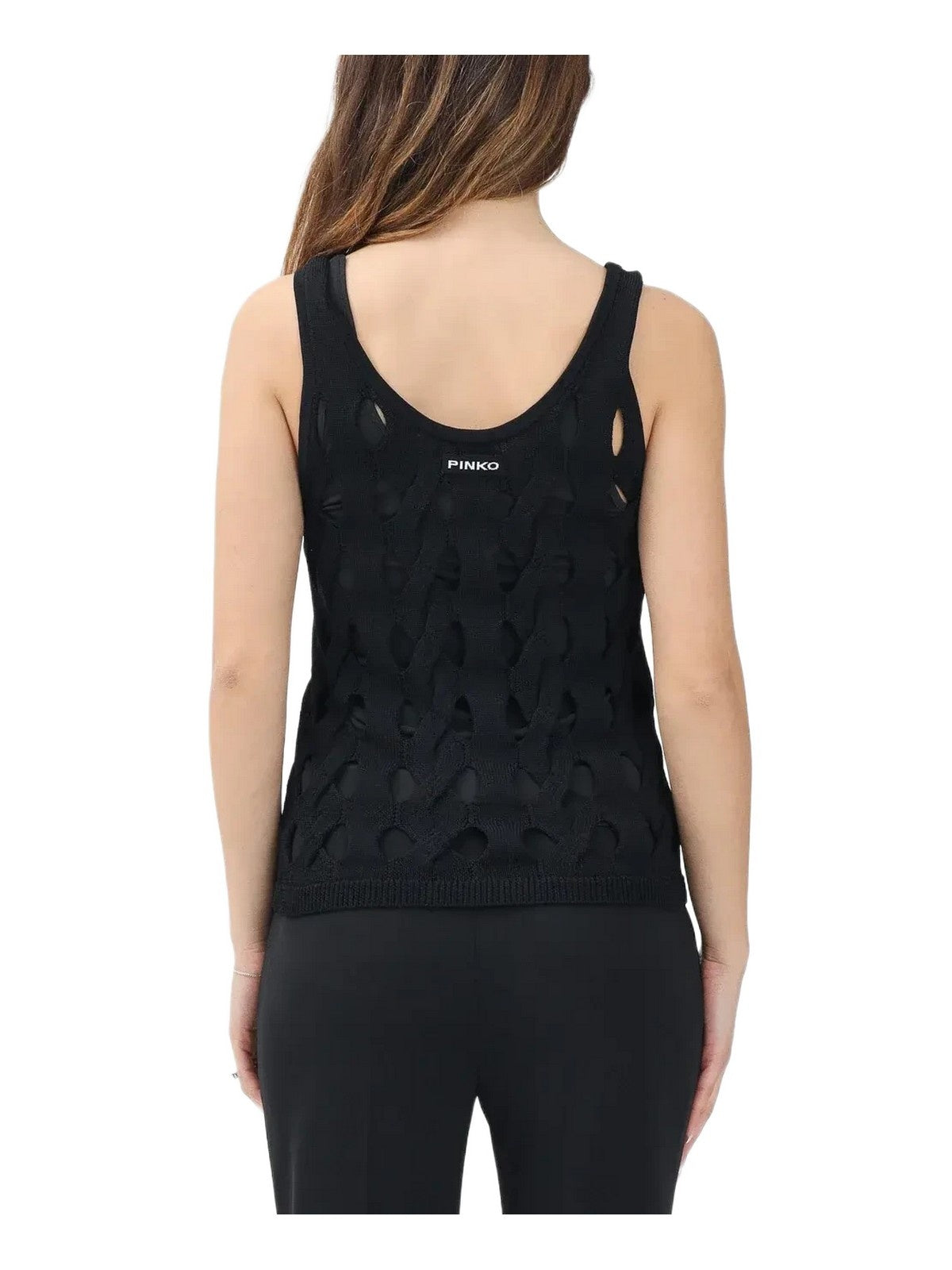 Canotte e top Donna Pinko - Top canottiera maglia traforata - Nero