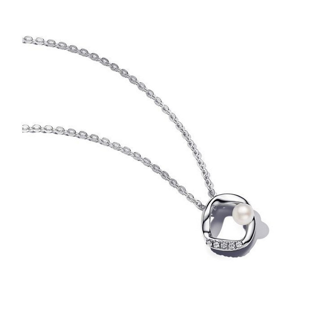 Collana Donna Pandora Cerchio Linea Sinuosa con Perla d'Acqua Dolce Coltivata e Pavè - 393303C01