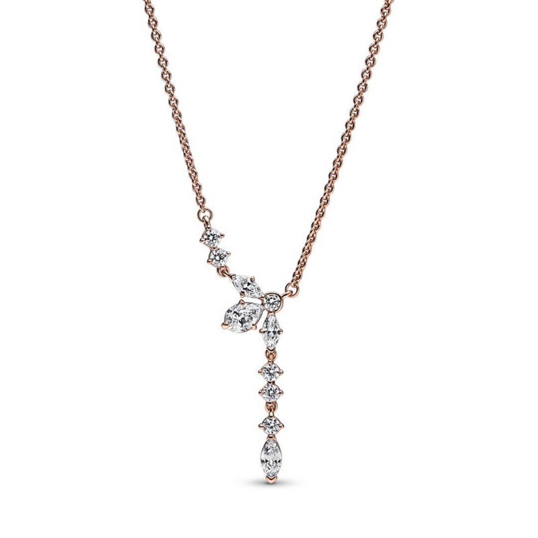 Pandora Collana Herbarium Petali Luminosi, esclusiva lega metallica placcata oro rosa 14k; 6 zirconia cubica incolore taglio brillante rotondo, incastonatura a griffe; 1 zirconia cubica incolore taglio brillante rotondo, incastonatura metà a castone e me