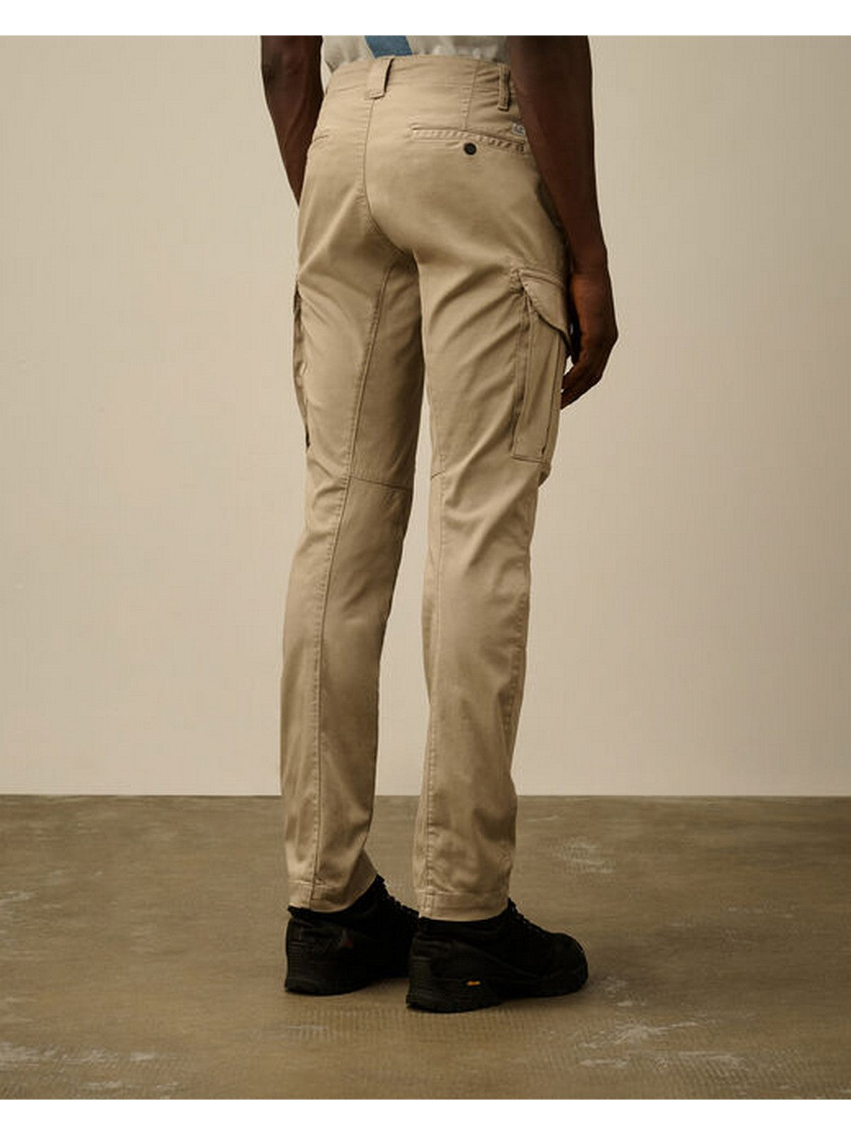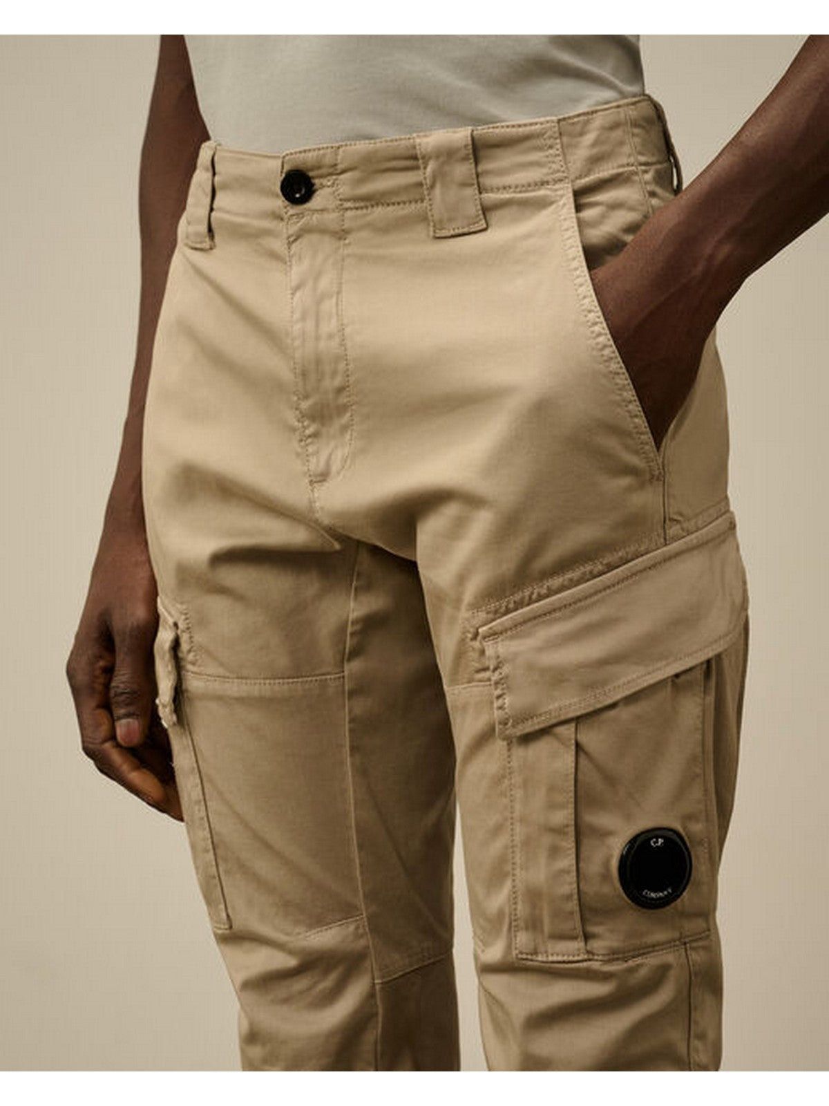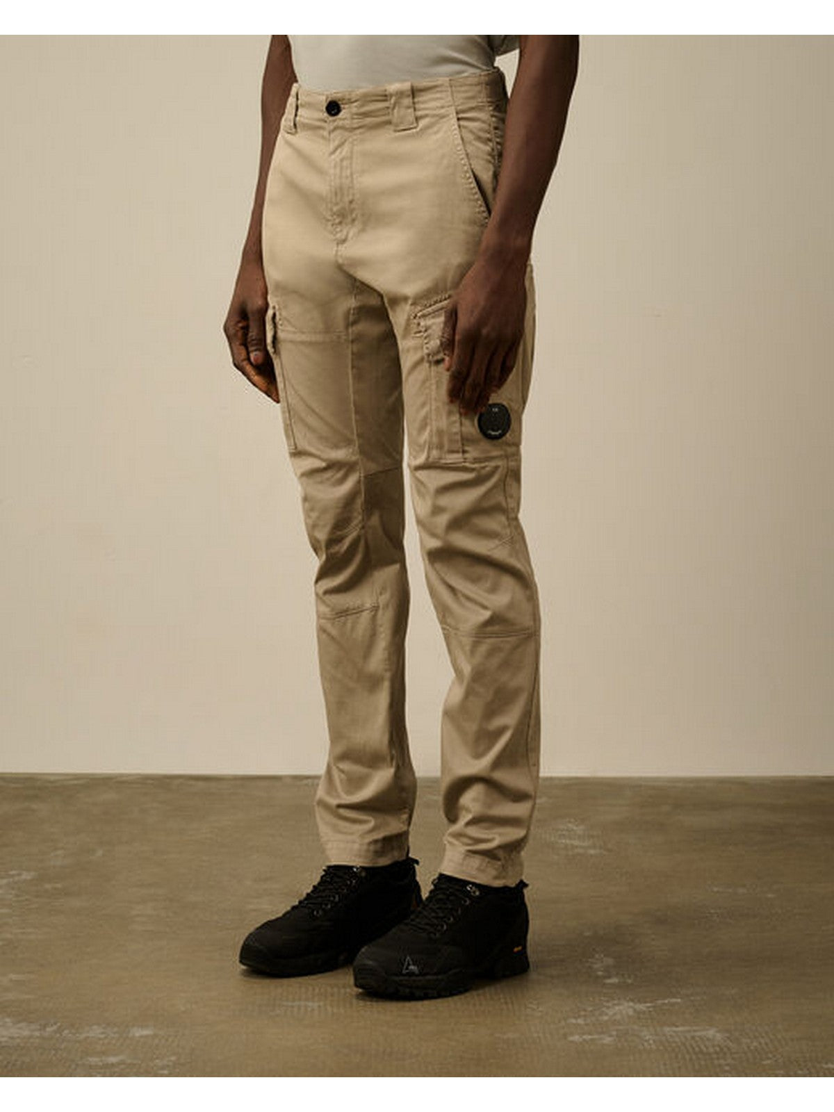 Pantaloni cargo CP COMPANY realizzati in raso di cotone stretch smerigliato, caratterizzati da Lente