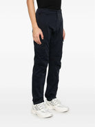 Pantaloni cargo CP COMPANY realizzati in raso di cotone stretch smerigliato, caratterizzati da Lente