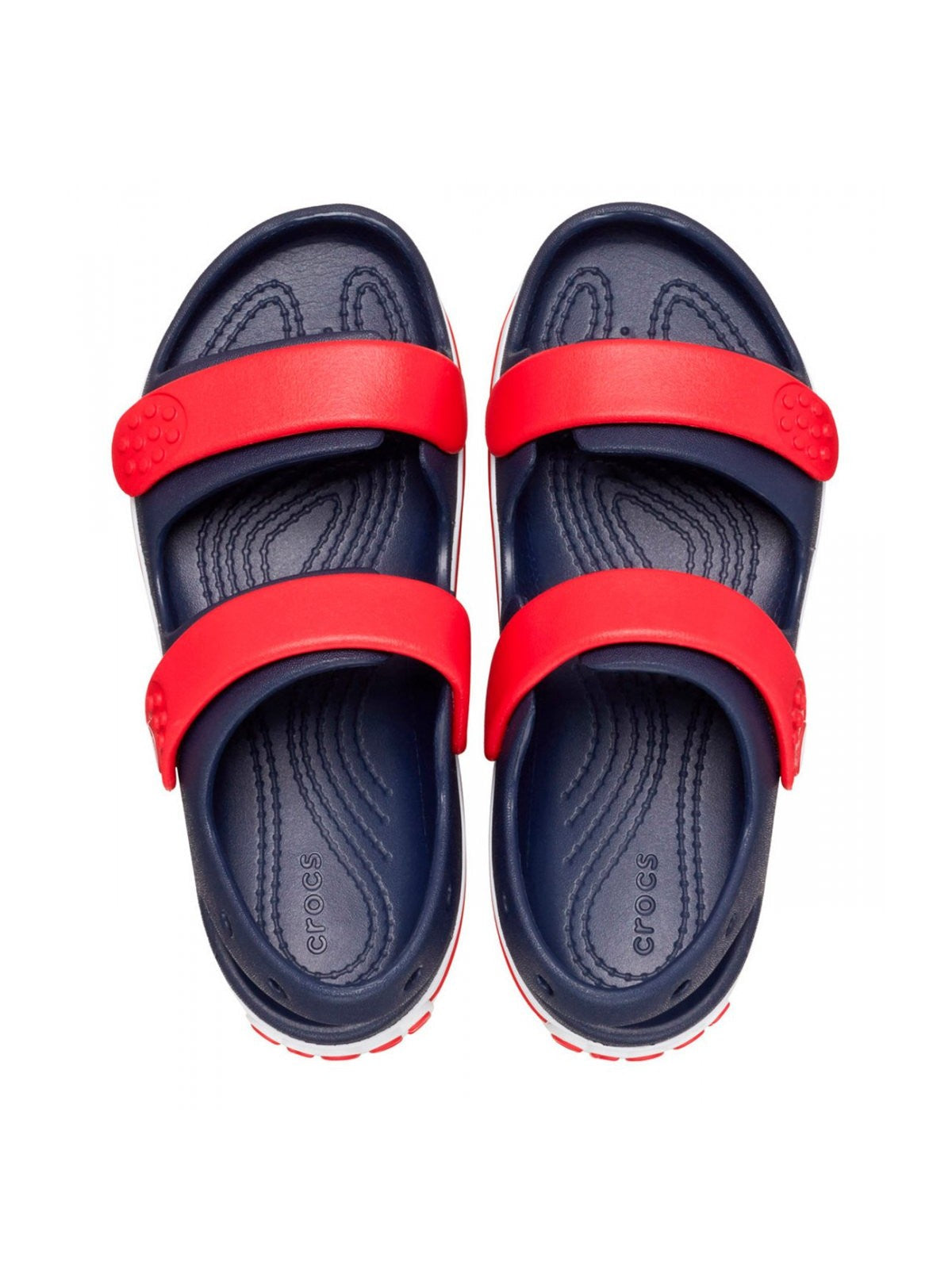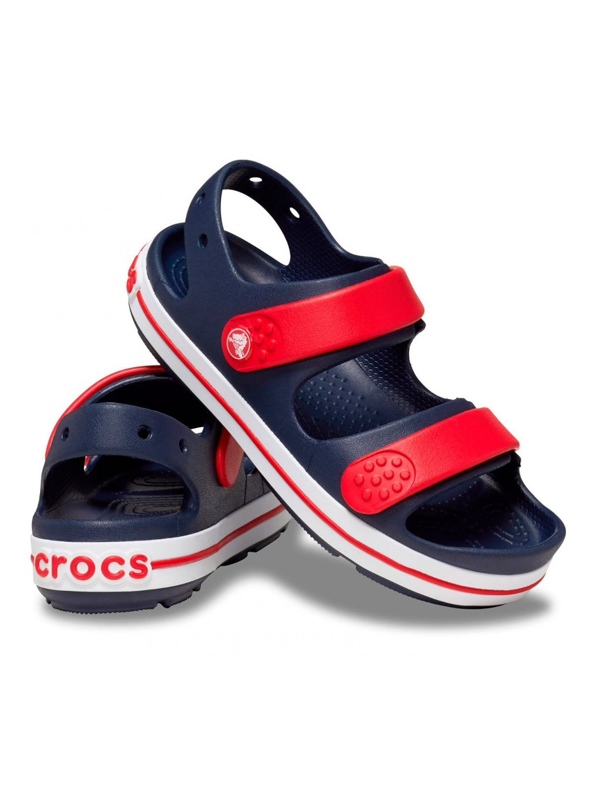 Sandalo bambino CROCS realizzata in Croslite completamente sagomata con puntali. Tomaia a due cinturini con doppie chiusure a strappo.