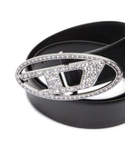 Cintura DIESEL realizzata in pelle italiana di alta qualità, chiusa con una fibbia Oval D ricoperta da cristalli. Larghezza: 4 cm.
