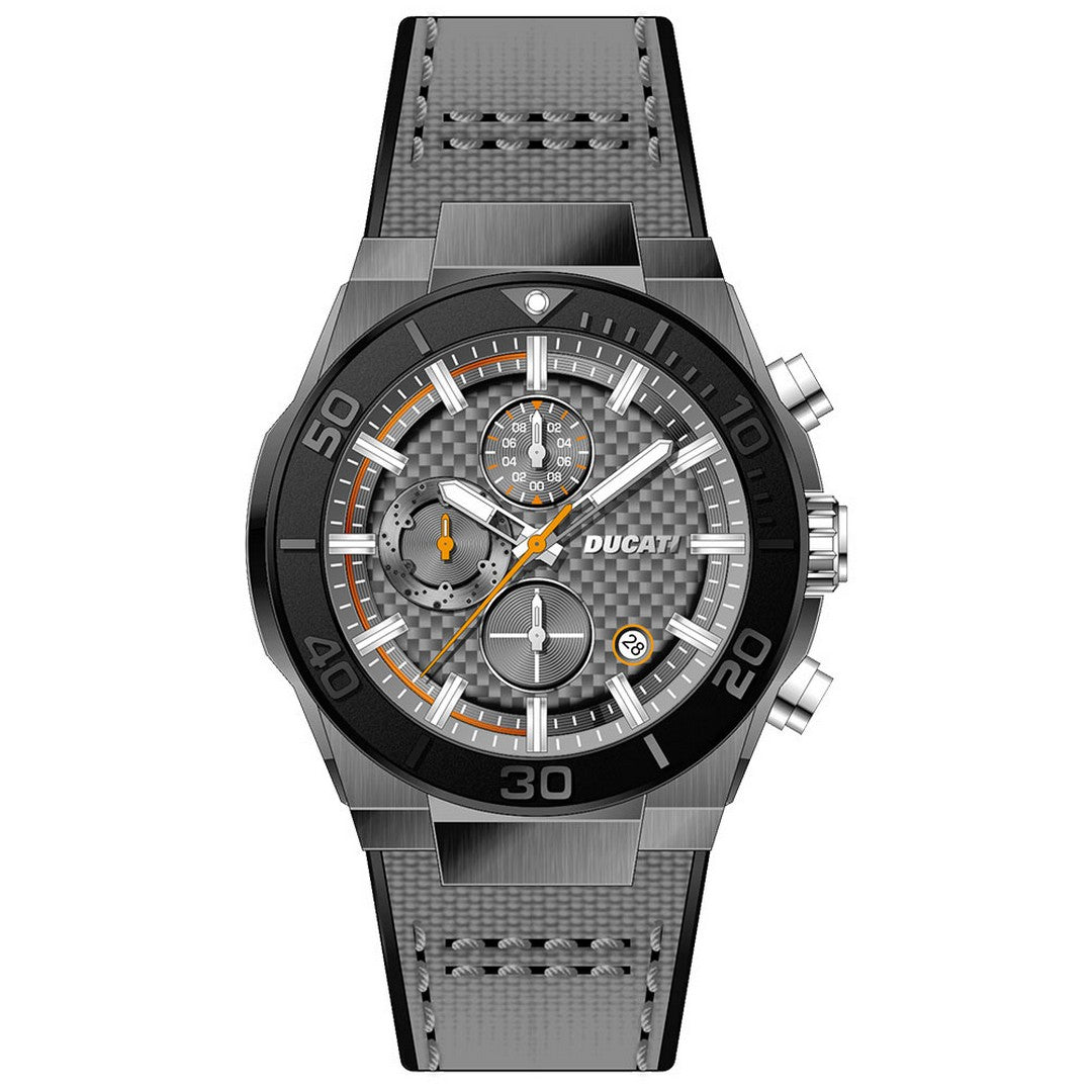 Orologio con cassa in acciaio pvd nero. Movimento al quarzo. Cinturino in caucciù e cordura. Vetro minerale. Dimensioni cassa mm. 43. Completo di scatola e garanzia.