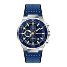 Orologio Ducati Corse by Locman cronografo con cassa da 43,5mm in acciaio e lunetta trattata IP blu con numeri a rilievo in stile sub quadrante blu e giallo con logo Ducati, cinturino in tessuto di nylon blu con interno in silicone cod DTWGO0001204