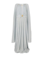 Completa il look con un paio di décolleté dorate e una pochette coordinata. L'insieme è perfetto per un evento elegante, combinando raffinatezza e classe in un abito senza tempo.
