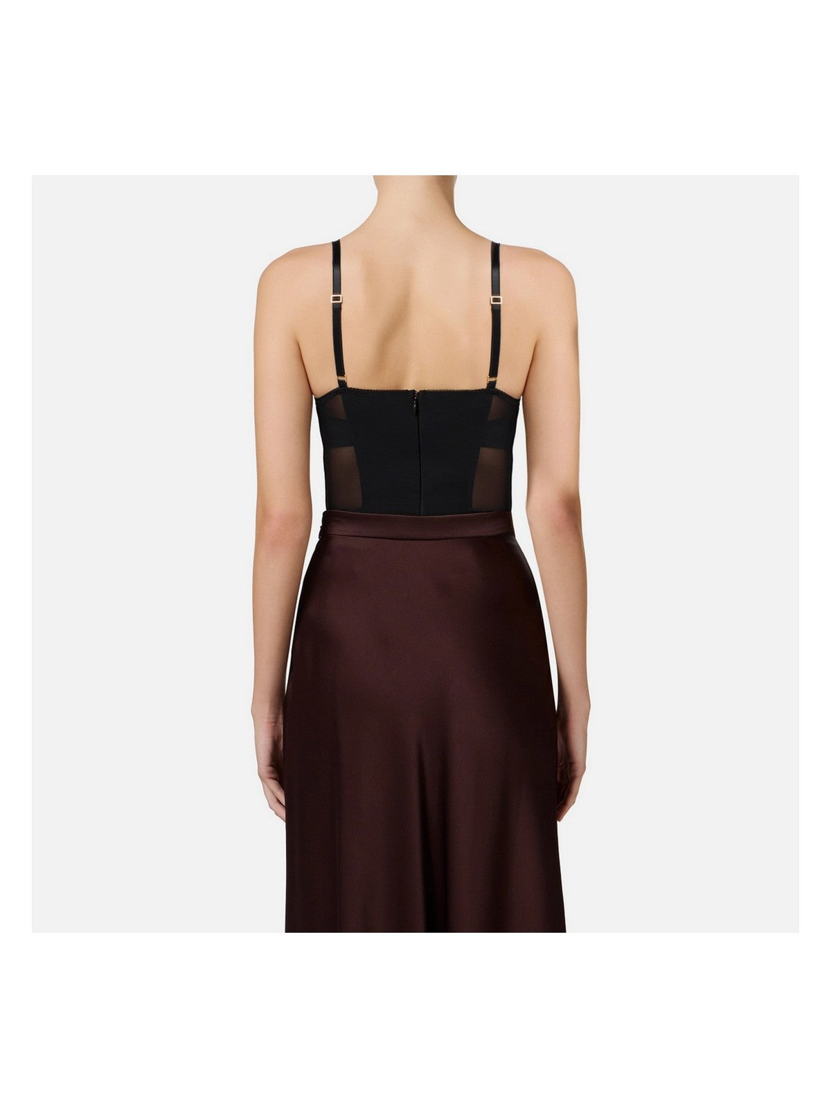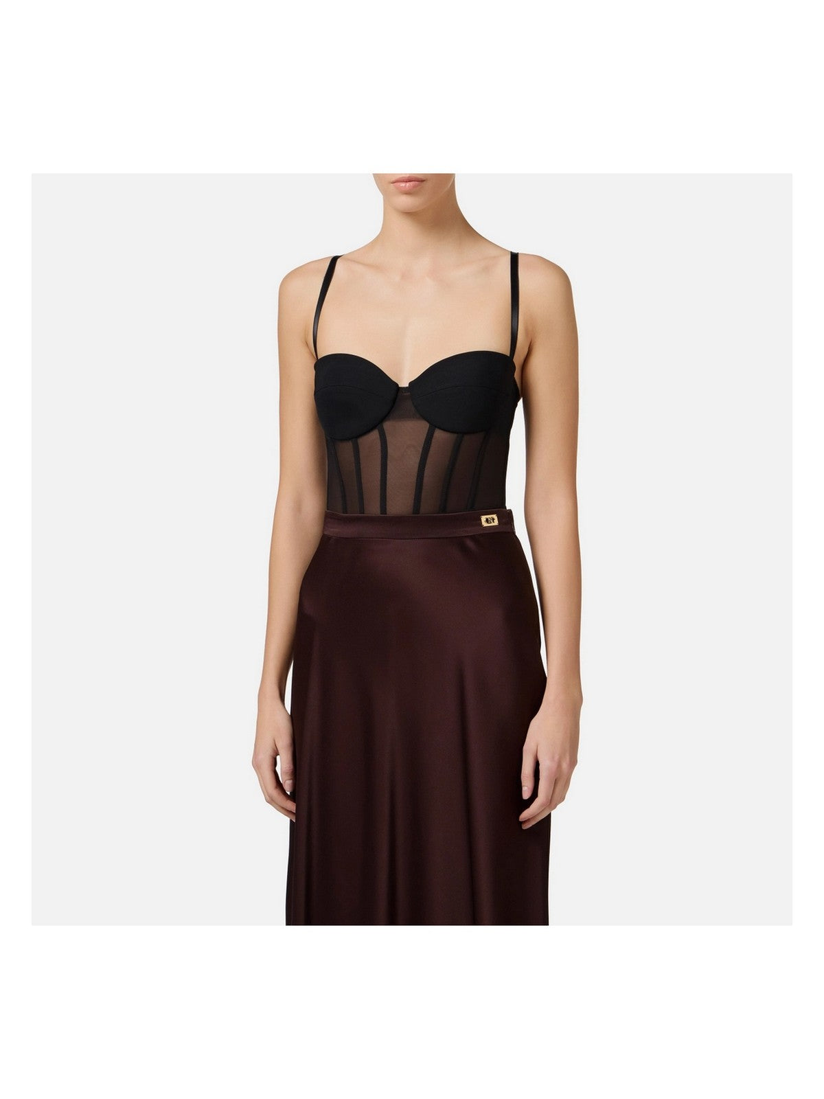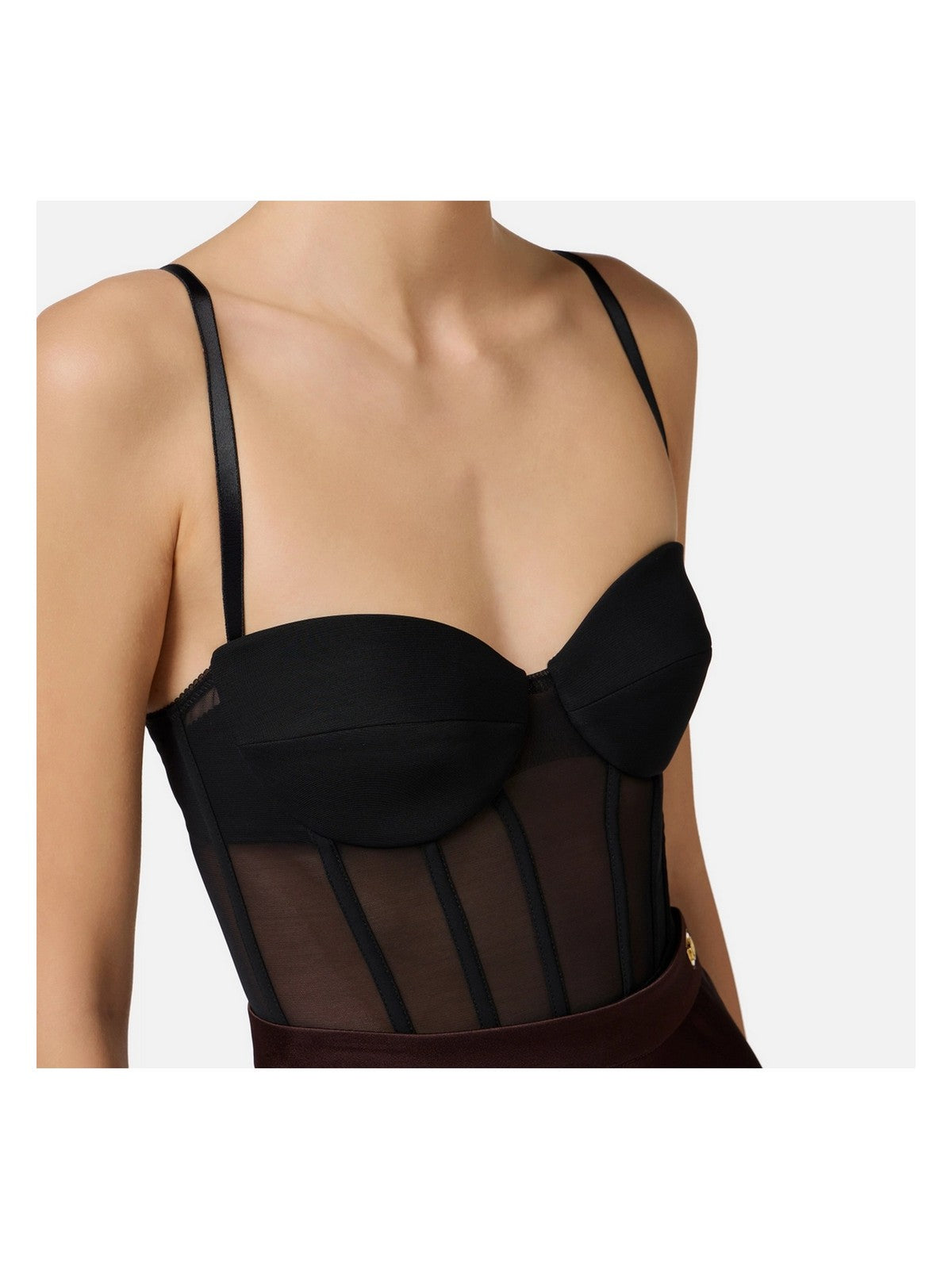 Body lingerie ELISABETTA FRANCHI in crêpe e tulle stretch con costruzione bustier che scolpisce la silhouette.
