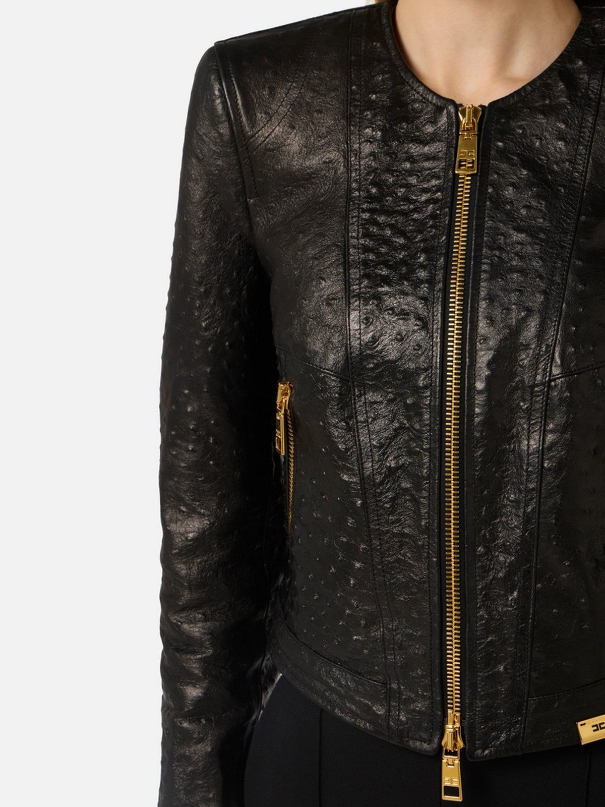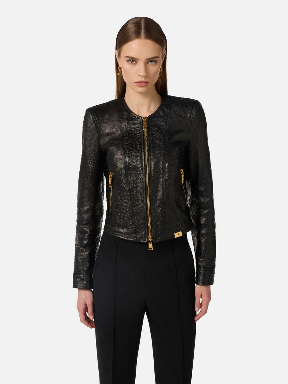 Giacca ELISABETTA FRANCHI realizzata in pelle. Texture struzzo.