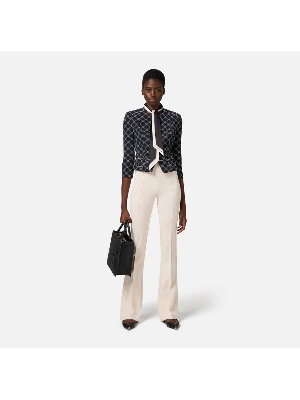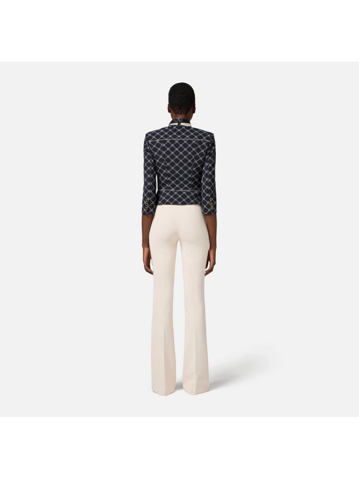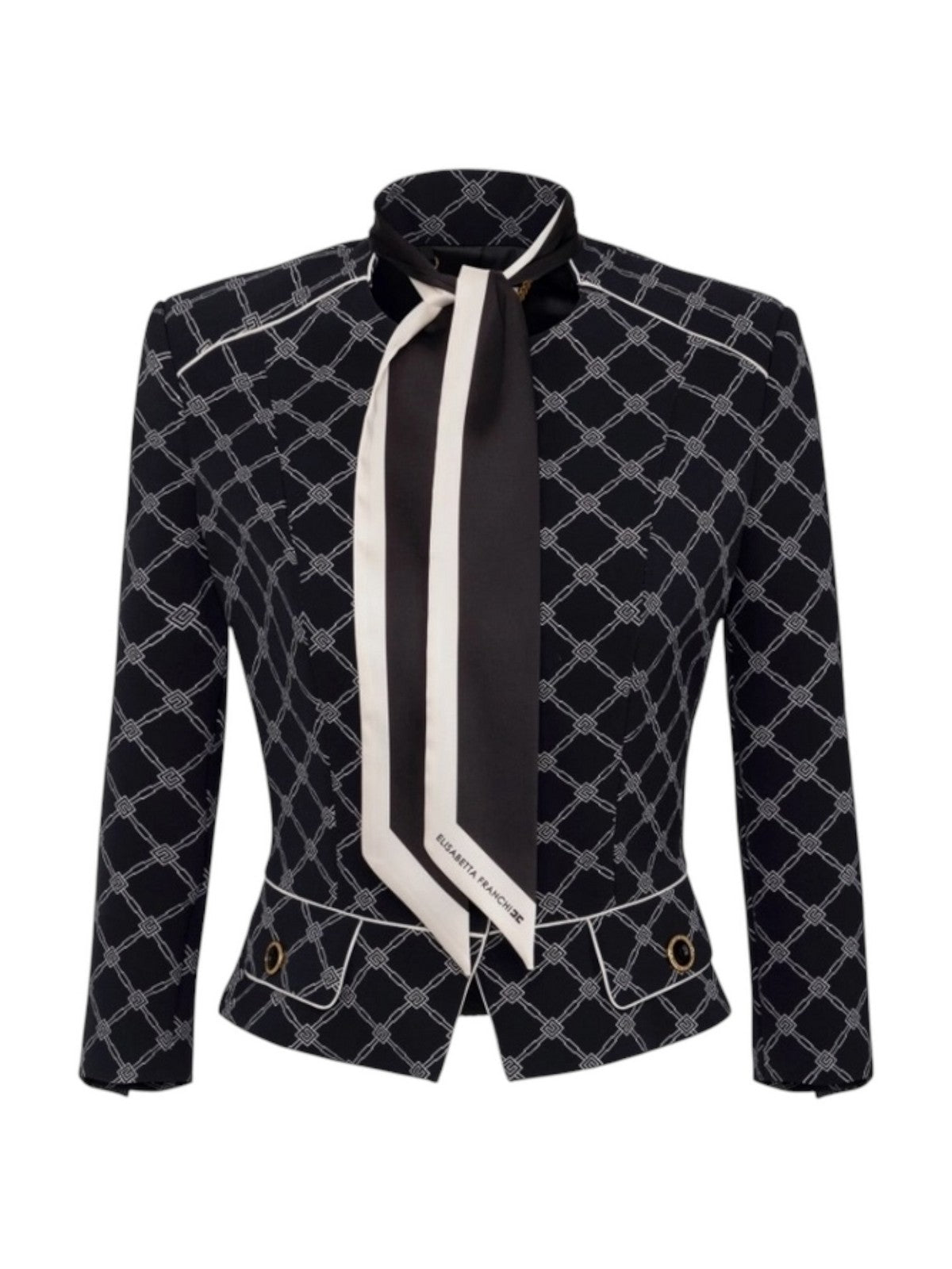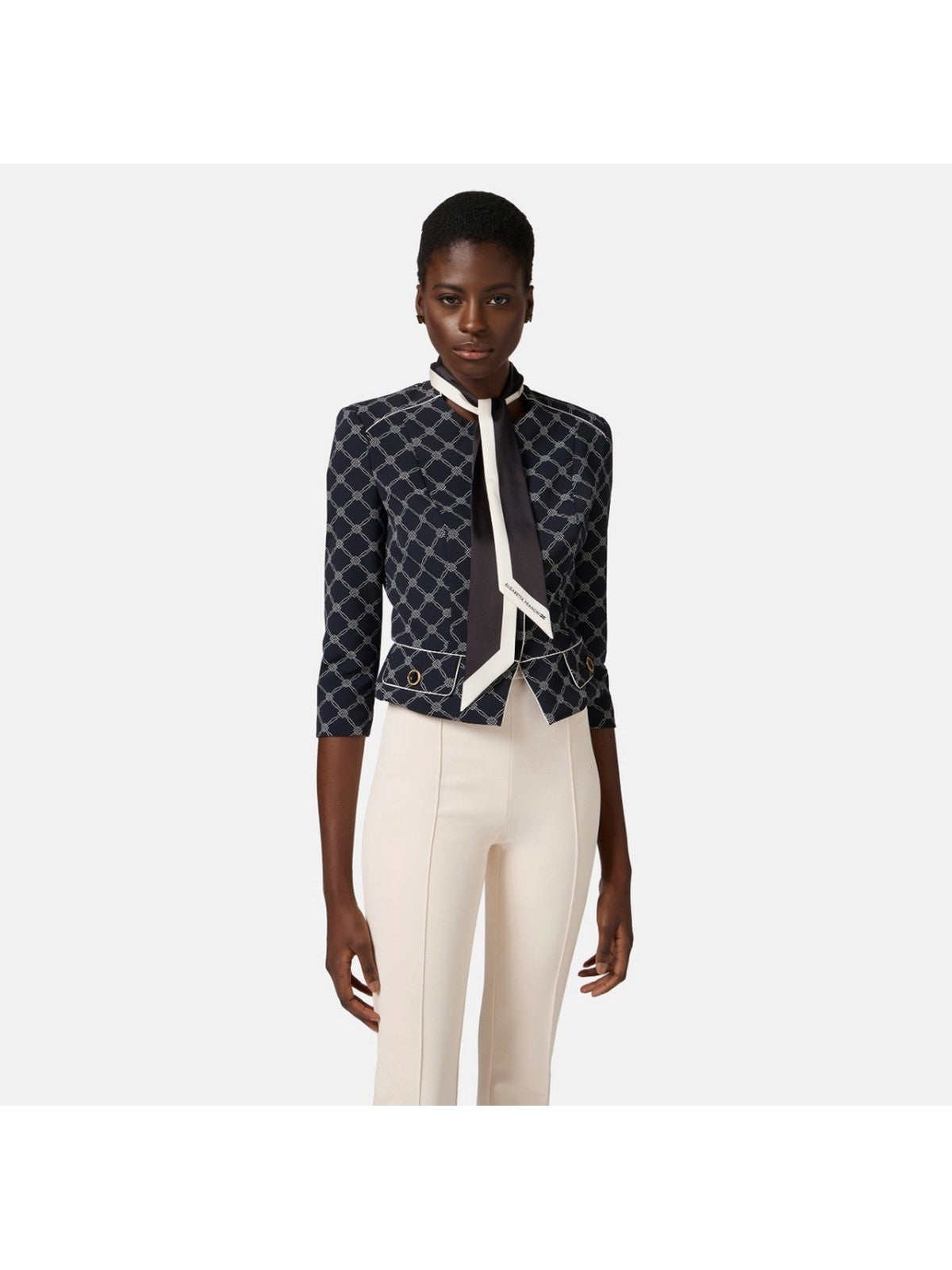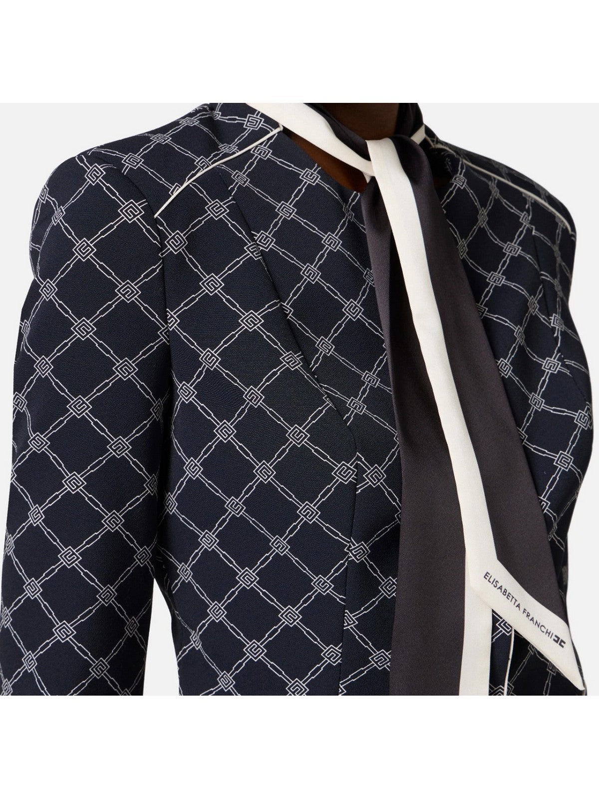 Giacca ELISABETTA FRANCHI in crêpe stretch con stampa all-over a losanghe e piping a contrasto