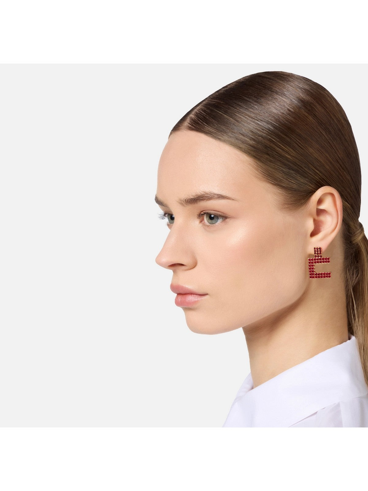 Orecchini logo ELISABETTA FRANCHI con clip in metallo silver intarsiati di strass.